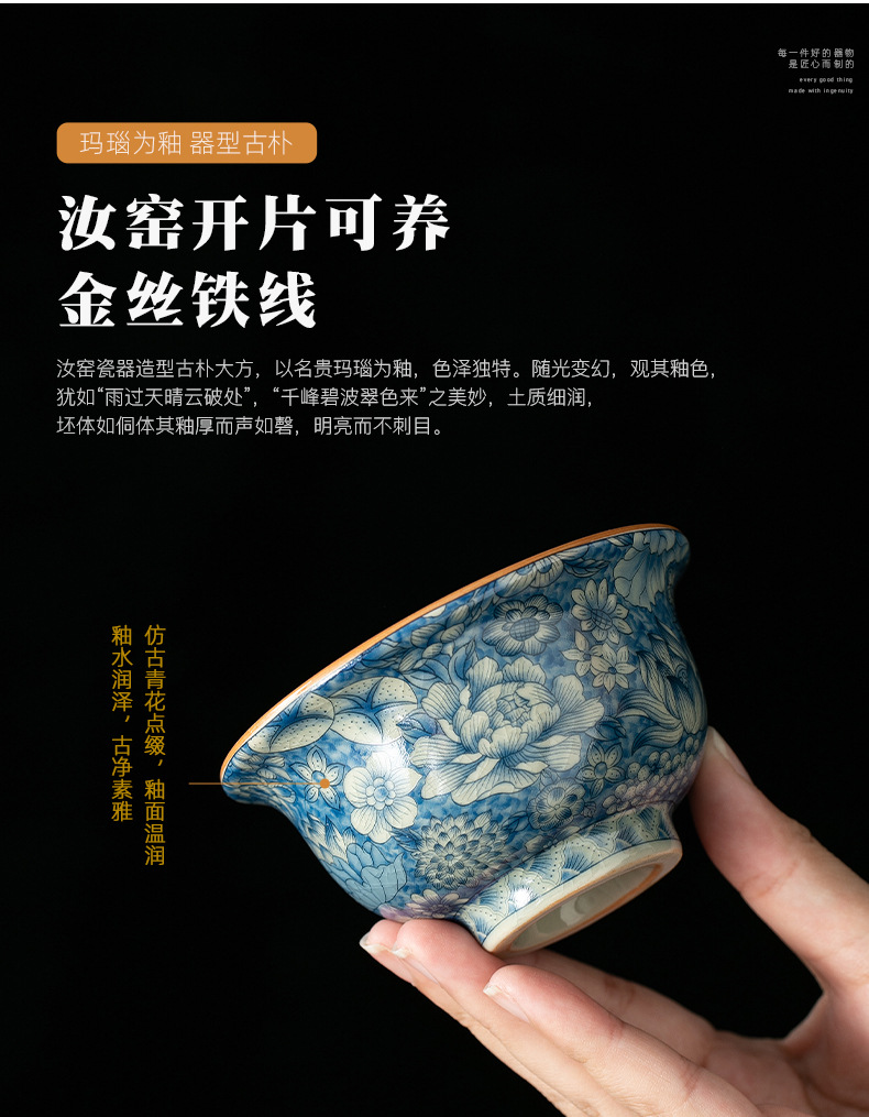 Ru Kiln 마스터 컵 스몰 사이즈 Baihua 티 컵 개인 특별 가구 단일 차 그릇 파란색과 흰색 세라믹 차 시음 컵스토어 가기
