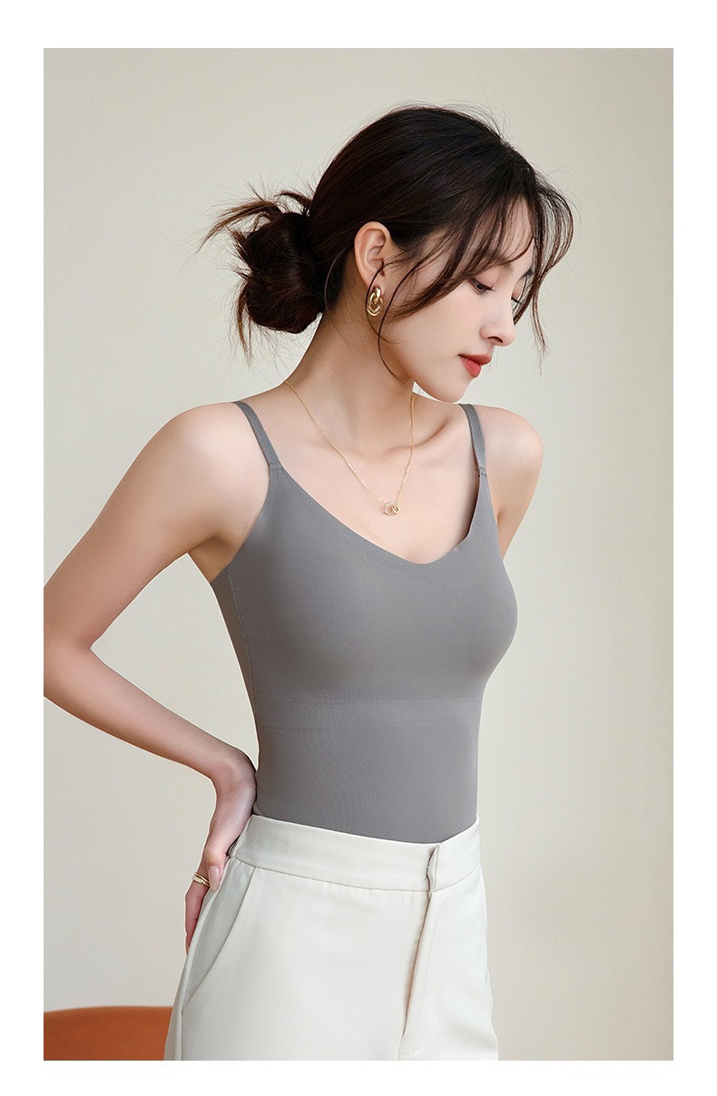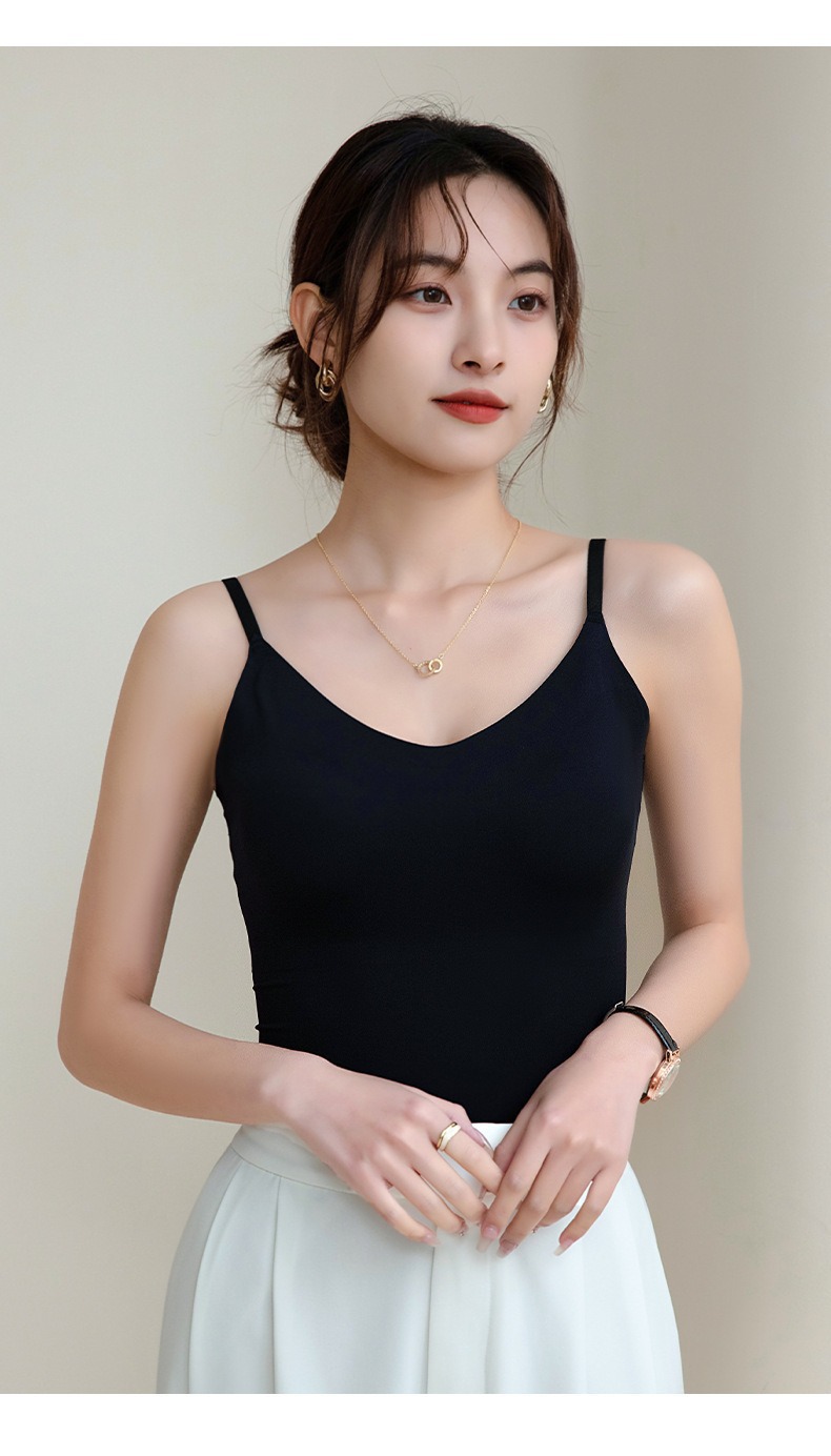 인기 슬링 6617 가슴 패드가 있는 여성용 여름용 롱 아이스 실크 심리스 캐미솔, 올인원, 아름다운 등, 아우터 및 이너웨어스토어 가기