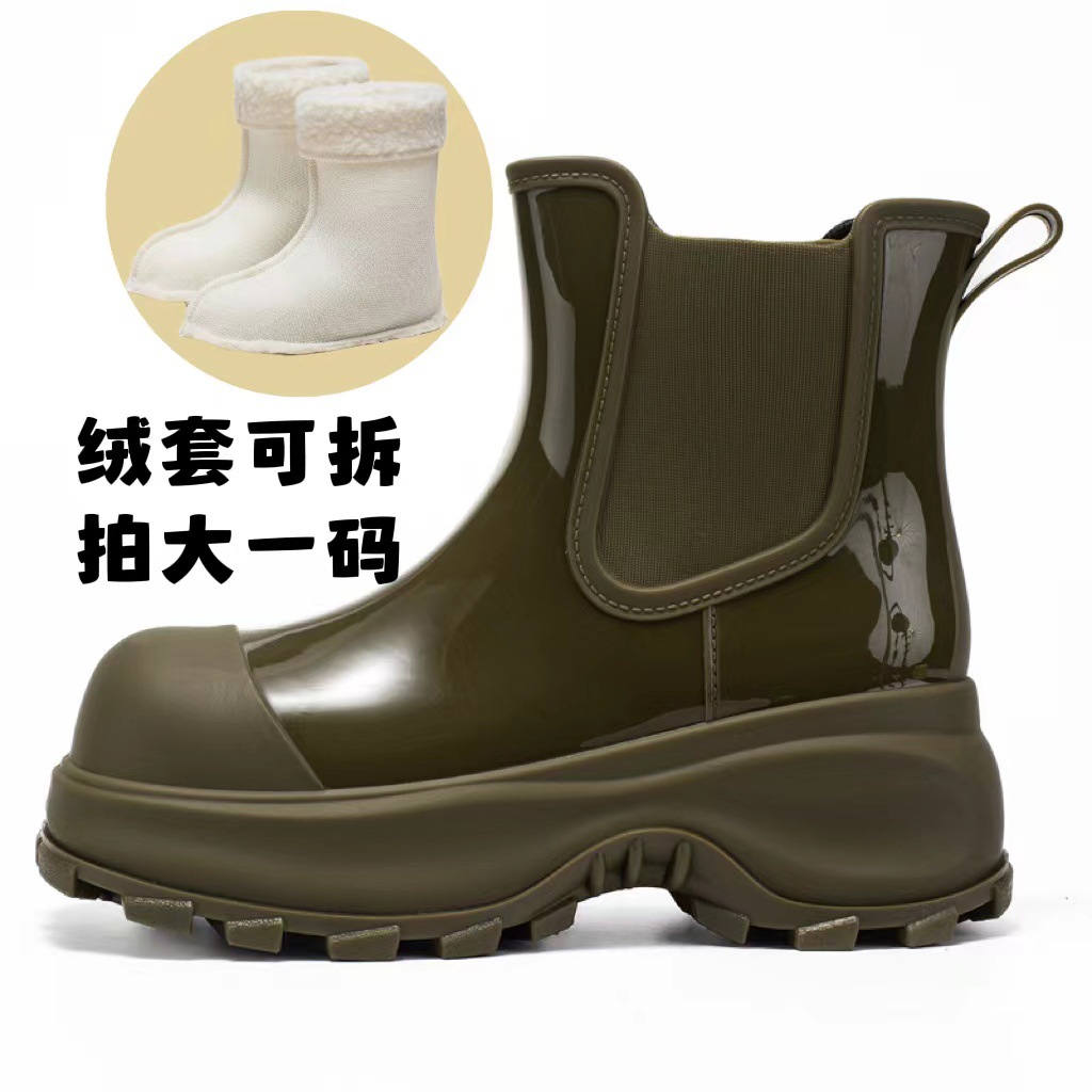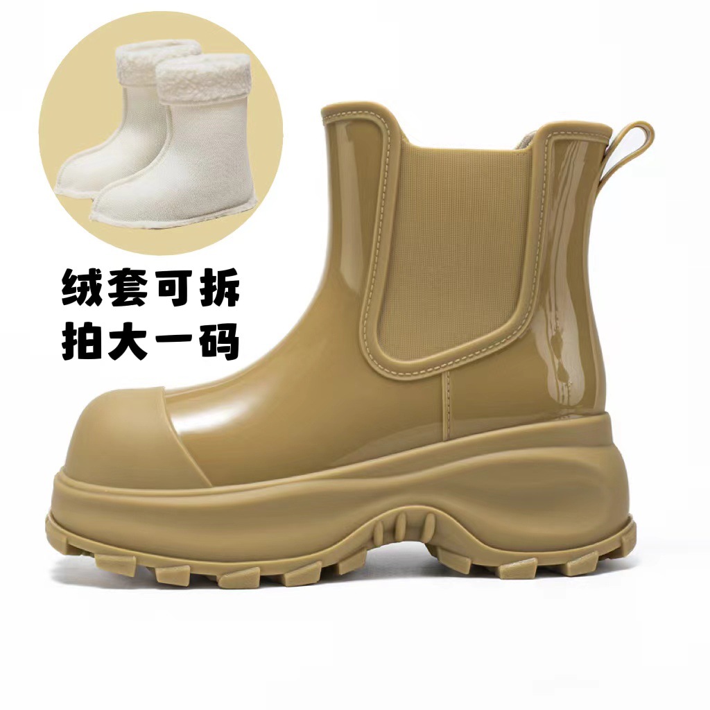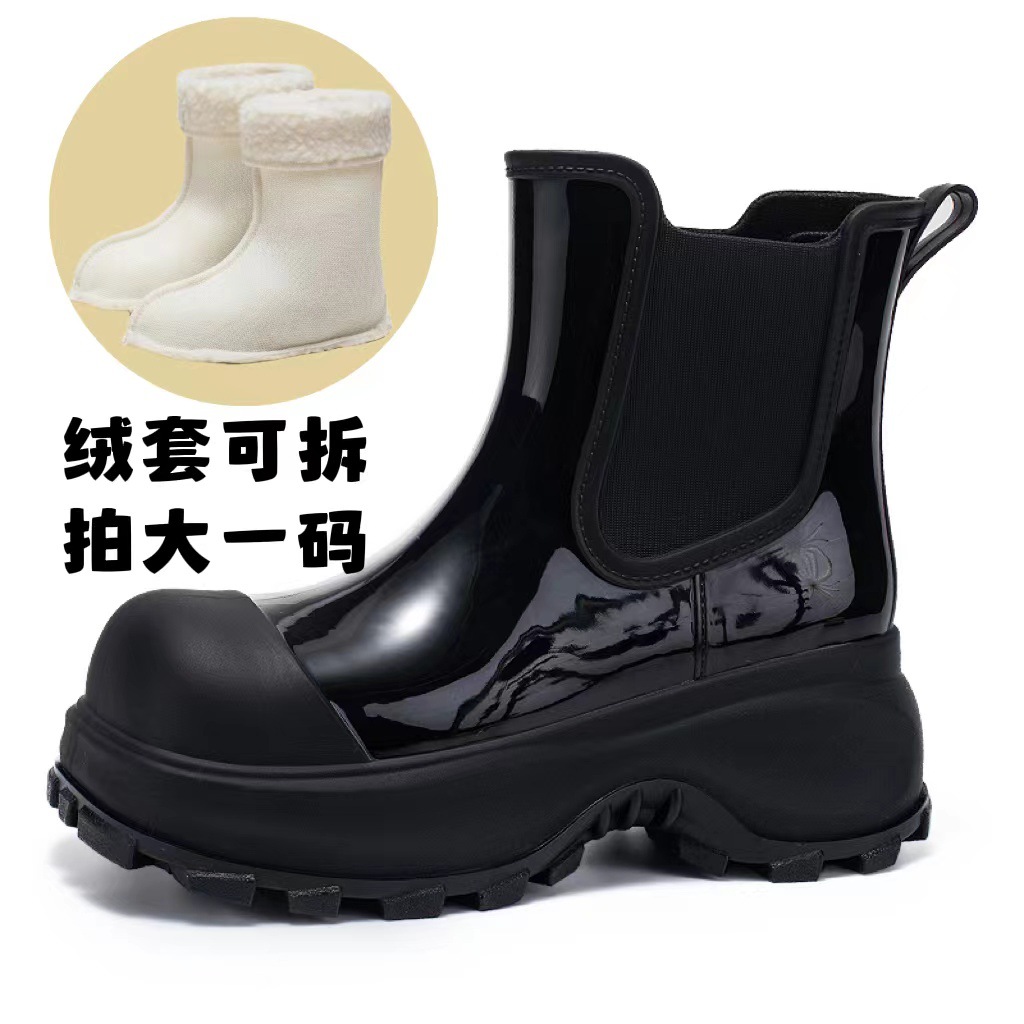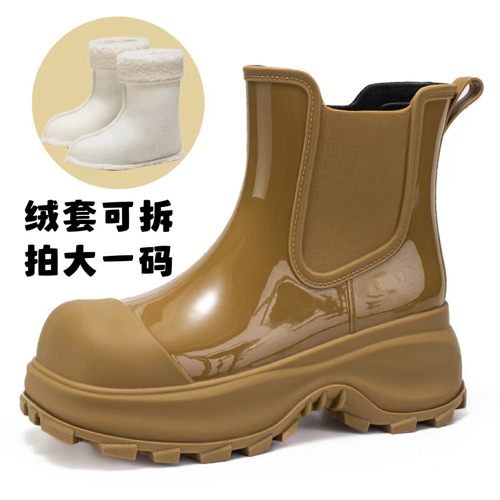증가 두꺼운 밑창 장화 짧은 튜브 여성용 겉옷 물 신발 미끄럼 방지 워터 부츠 주방 작업 세차 기모 장화 도매스토어 가기