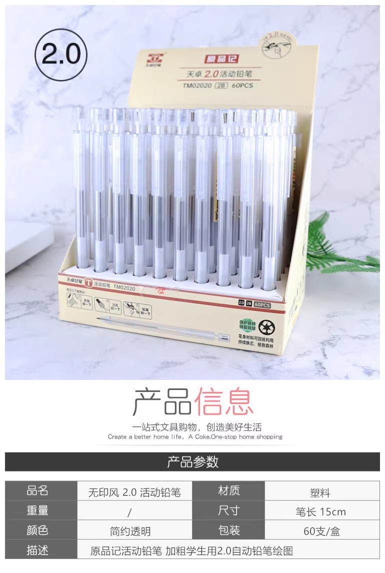 간단한 2.0 두꺼운 코어 자동 연필 Tianzhuo 비 인쇄 스타일 액티브 연필 학생 2B 연필 두꺼운 리필 연필스토어 가기