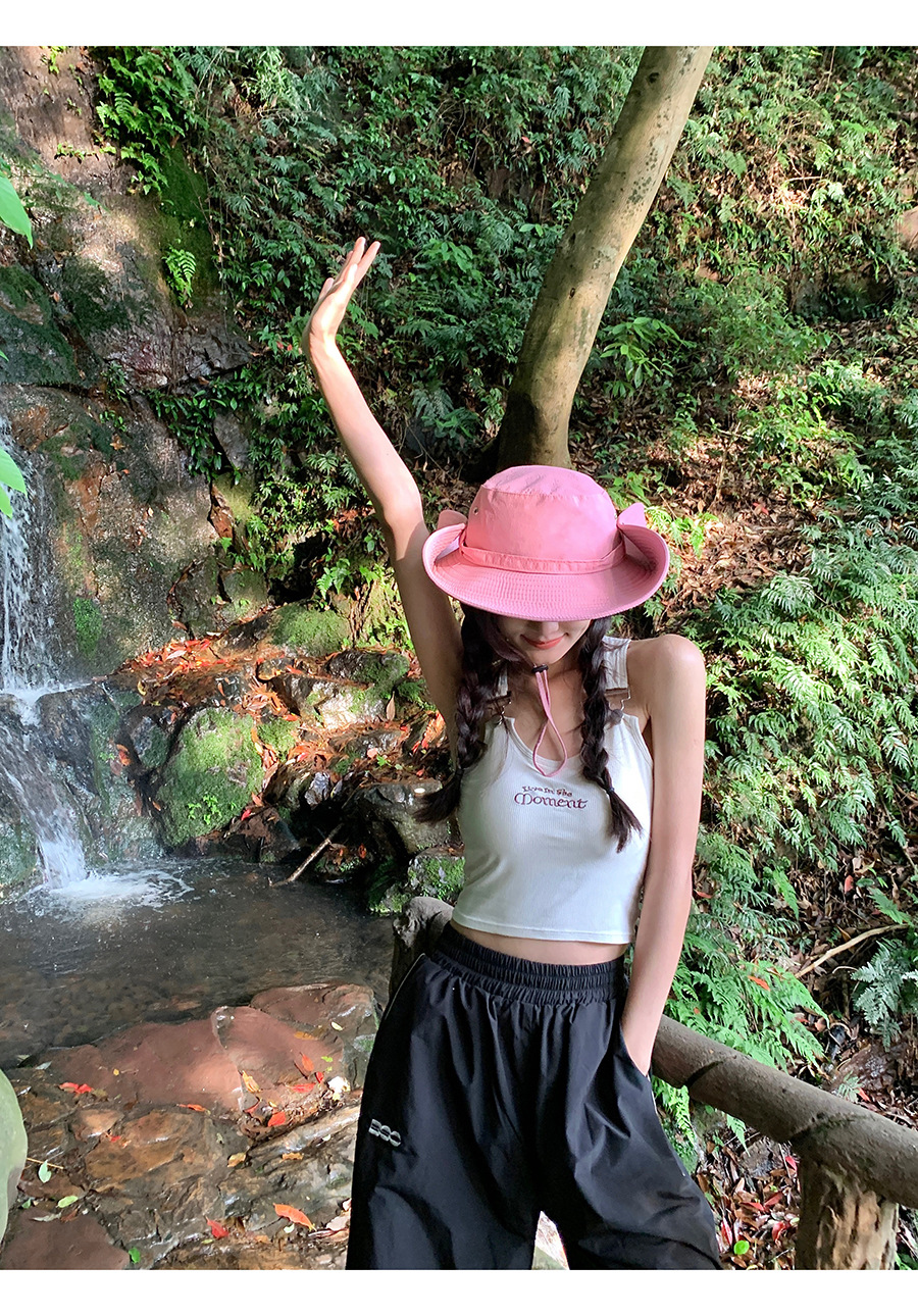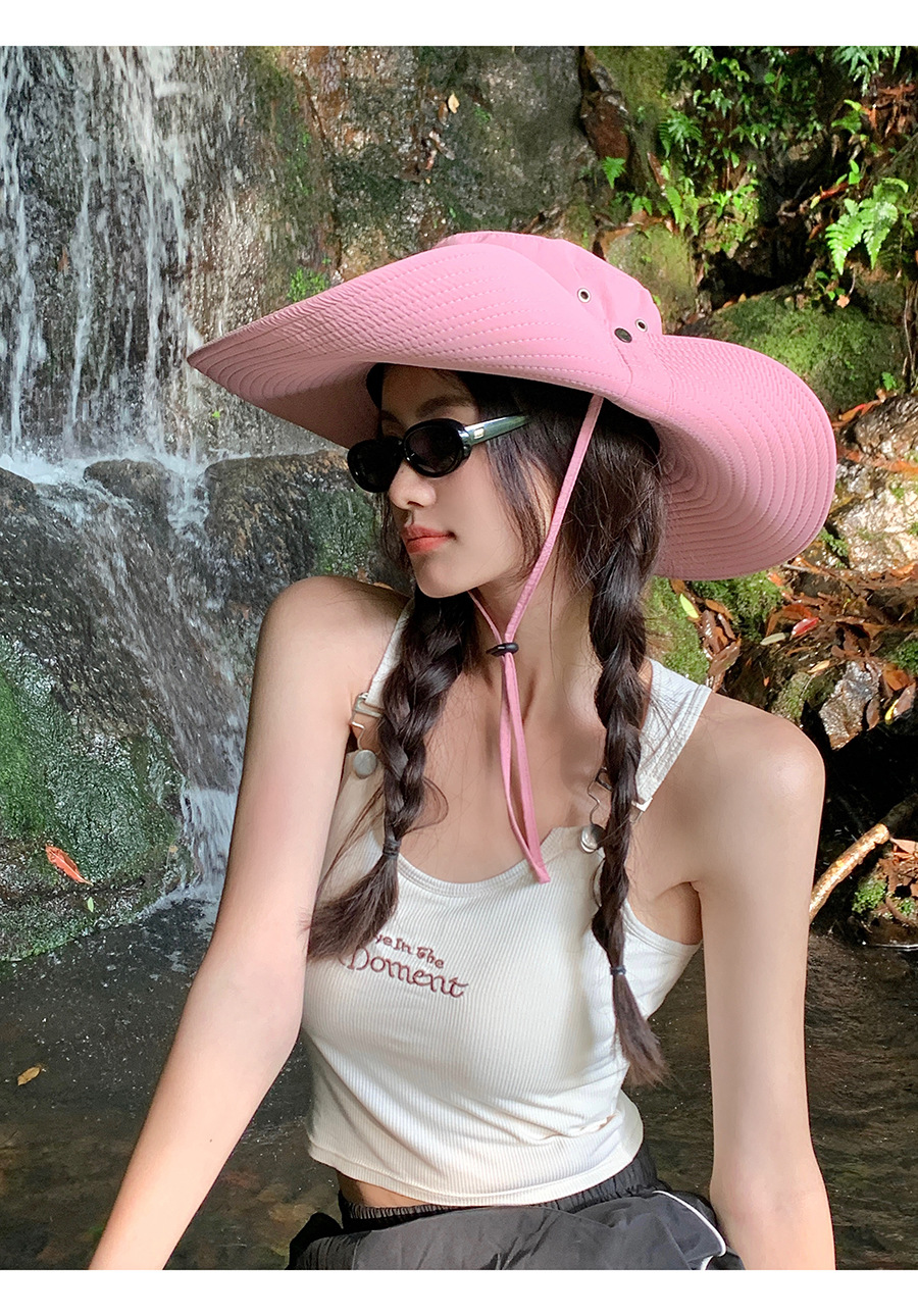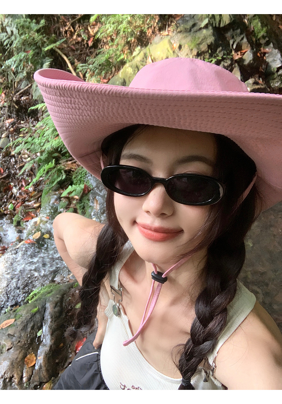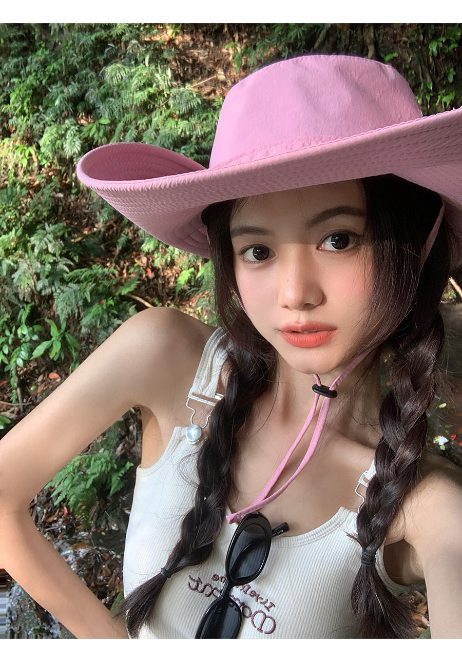 여름 서양 데님 선 스크린 모자 야외 큰 브림 등산 모자 여성의 태양 모자 핑크 어부 모자