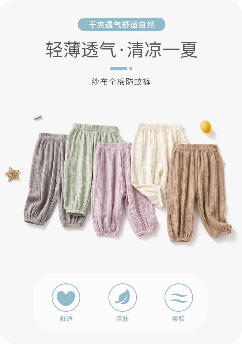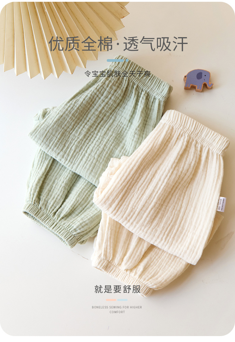 소년의 모기 방지 바지 여름 거즈 코튼 아기의 여름 바지 외부 착용 소녀 랜턴 바지 얇은 1 세 3 Guofeng