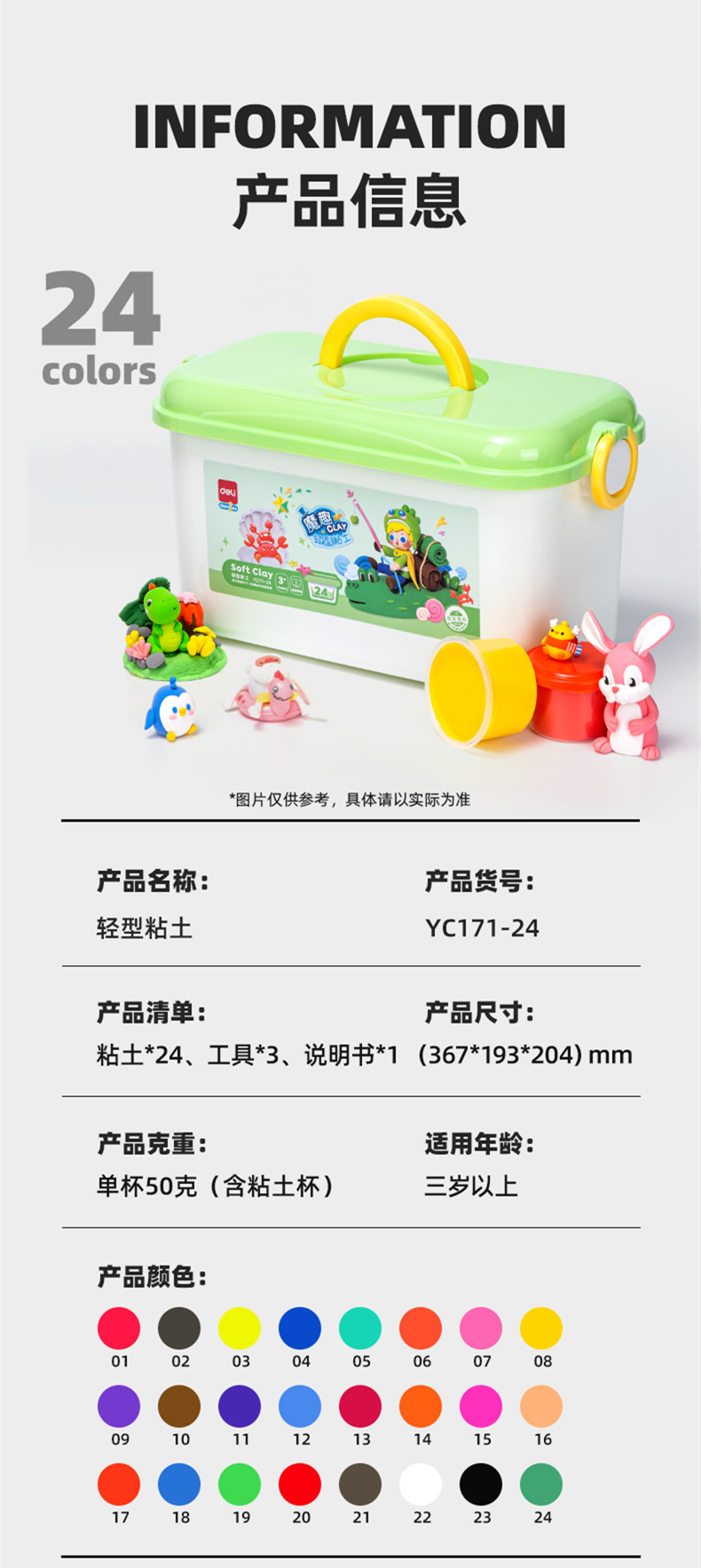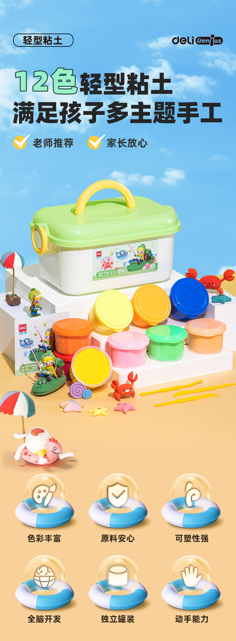 델리 대용량 컬러 점토 초등학생 플라스틱 어린이 유치원 초경량 점토 장난감 생일 선물