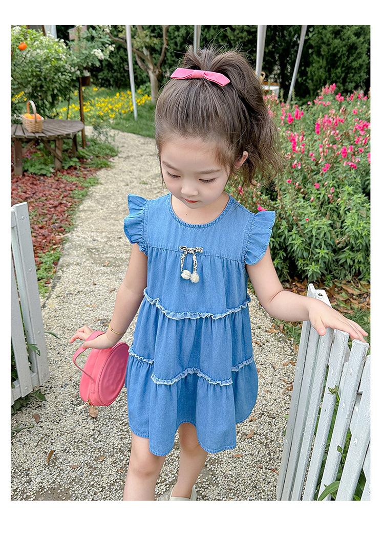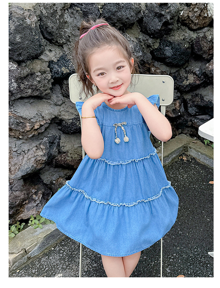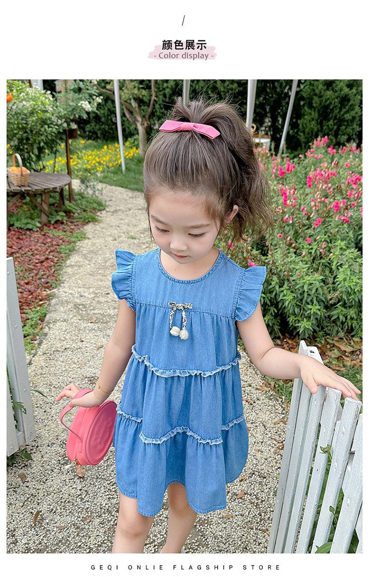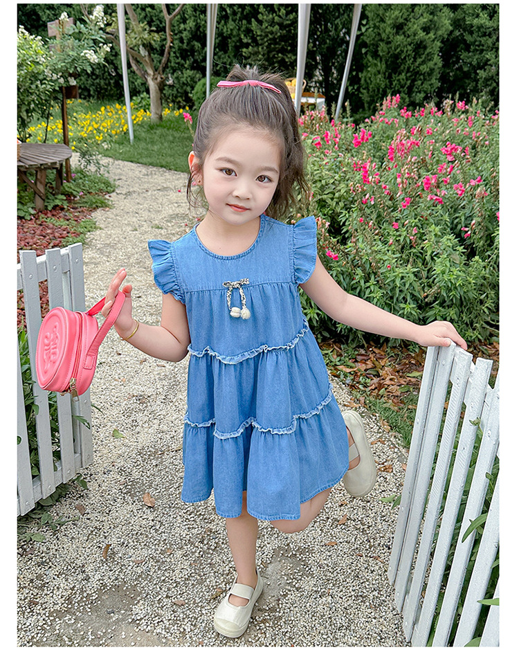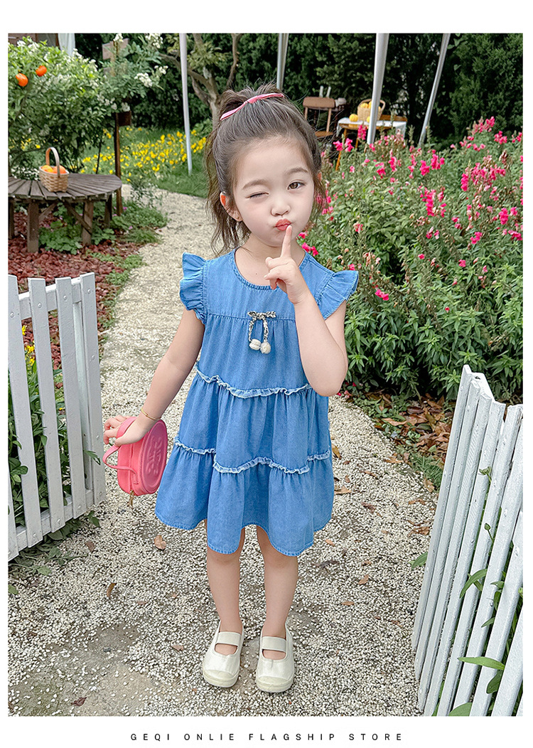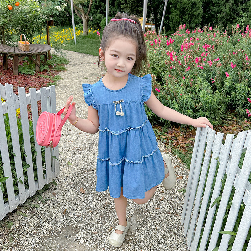 여아 여름 원피스 2025 신상 패션 소녀 데님 원피스 어린이 달콤한 공주 드레스스토어 가기