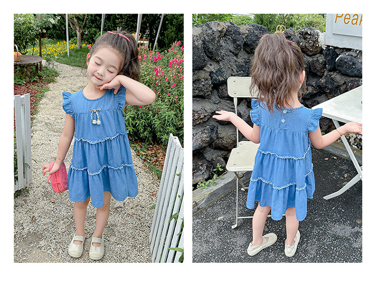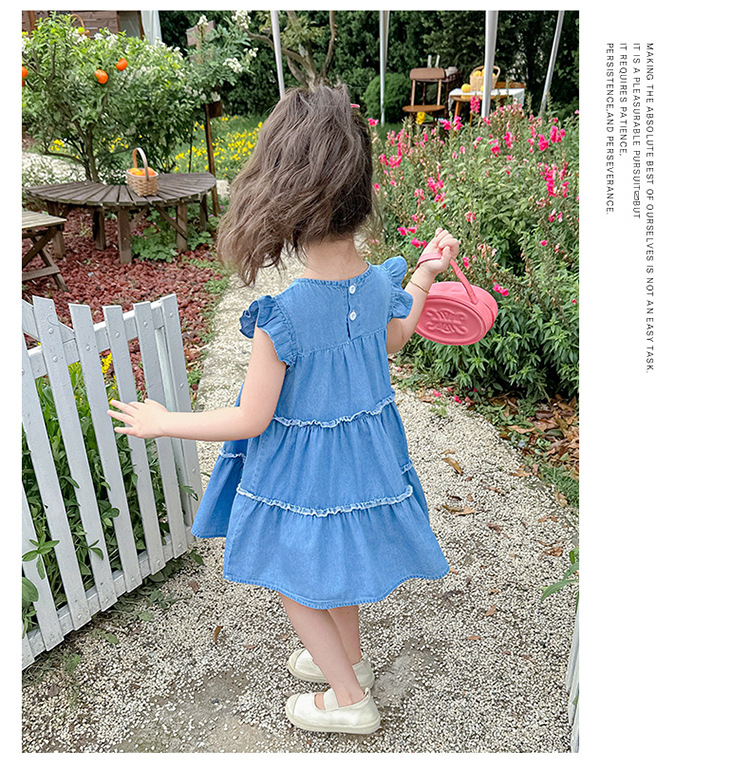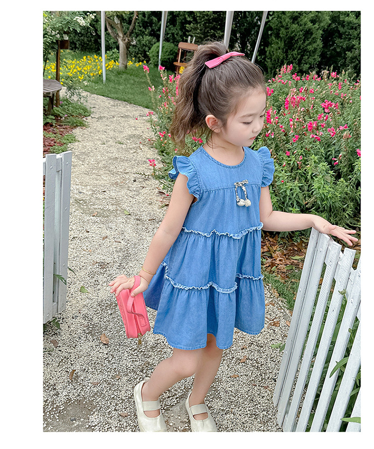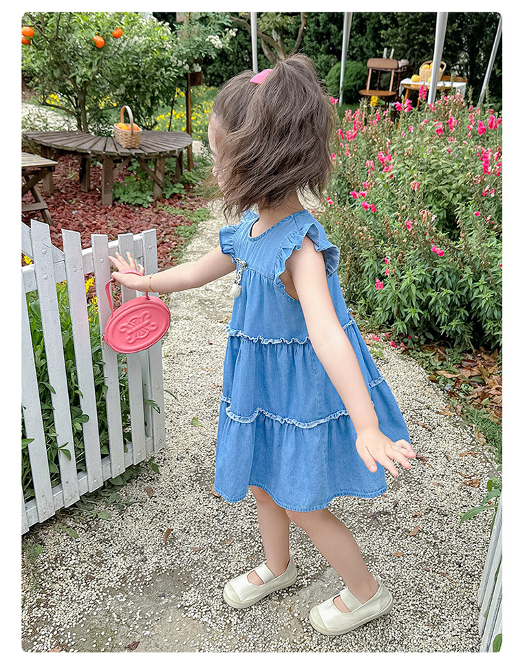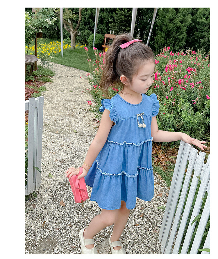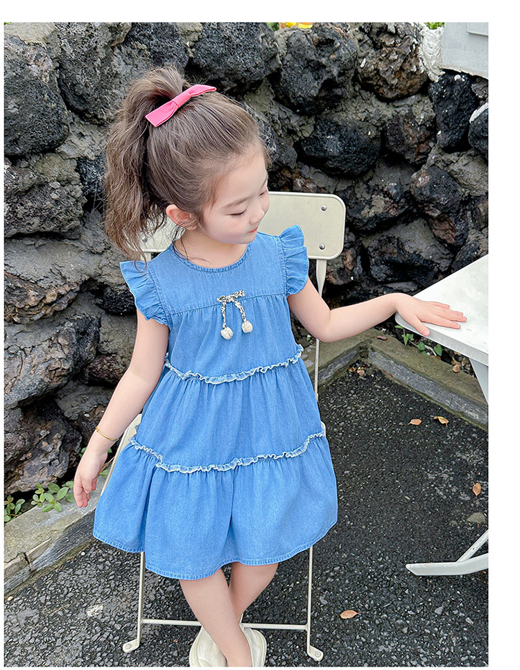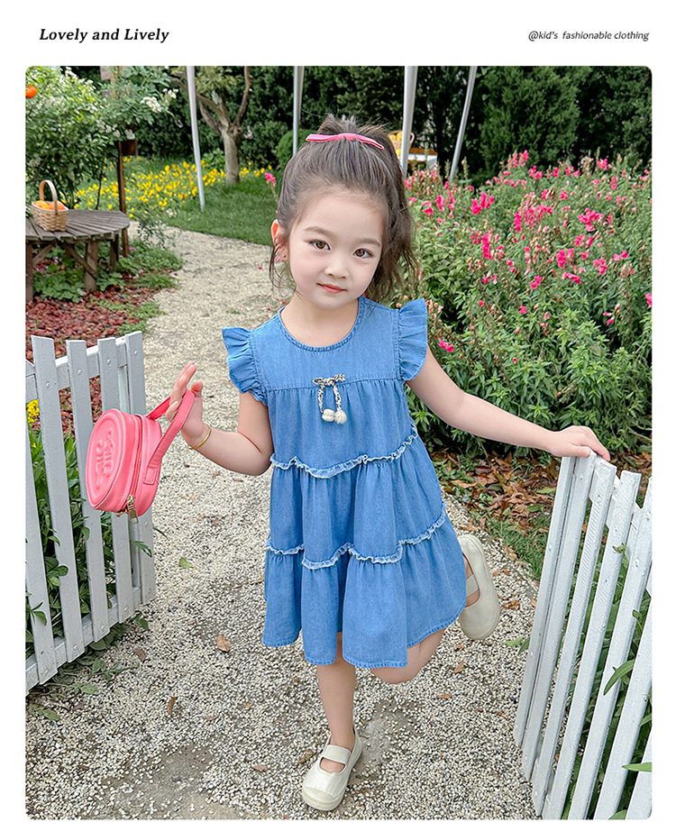 여아 여름 원피스 2025 신상 패션 소녀 데님 원피스 어린이 달콤한 공주 드레스스토어 가기