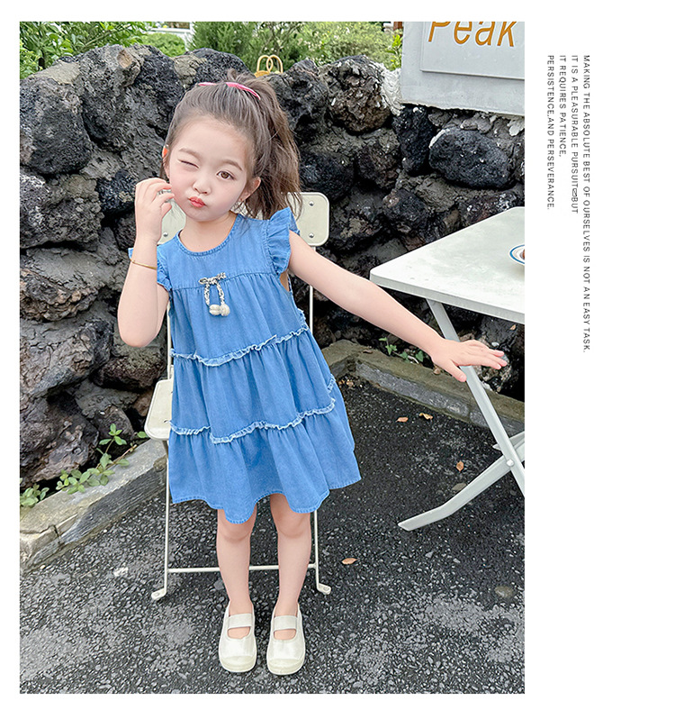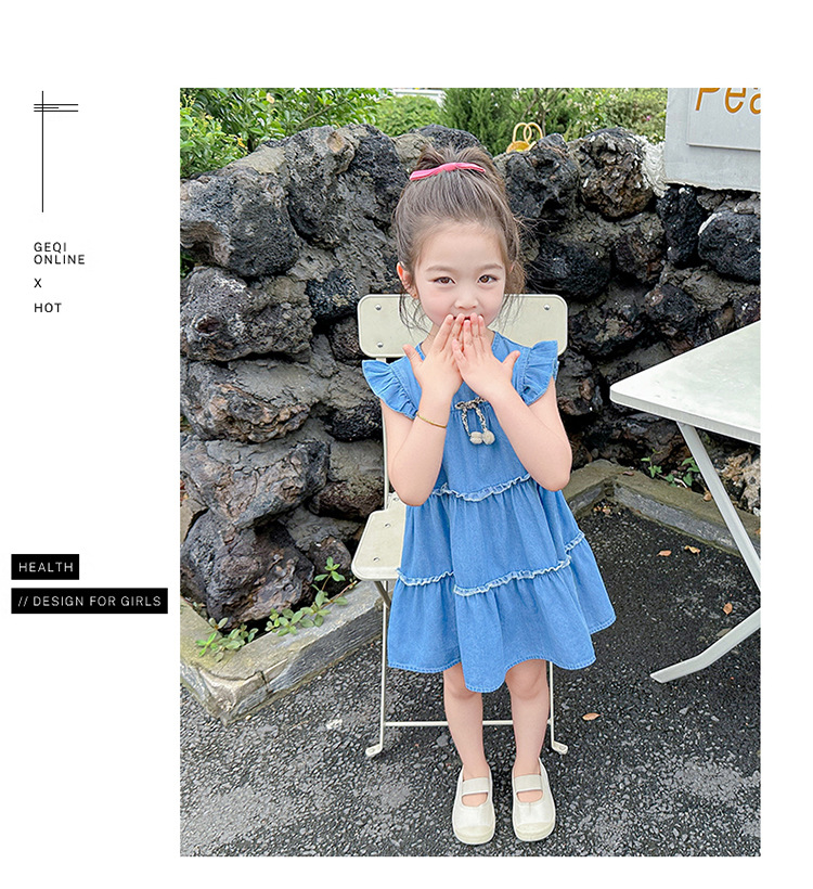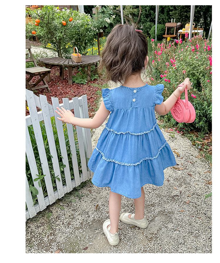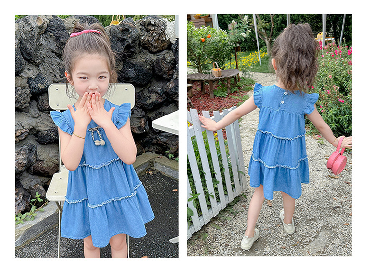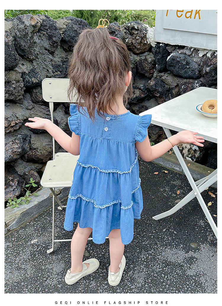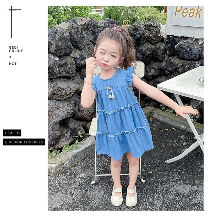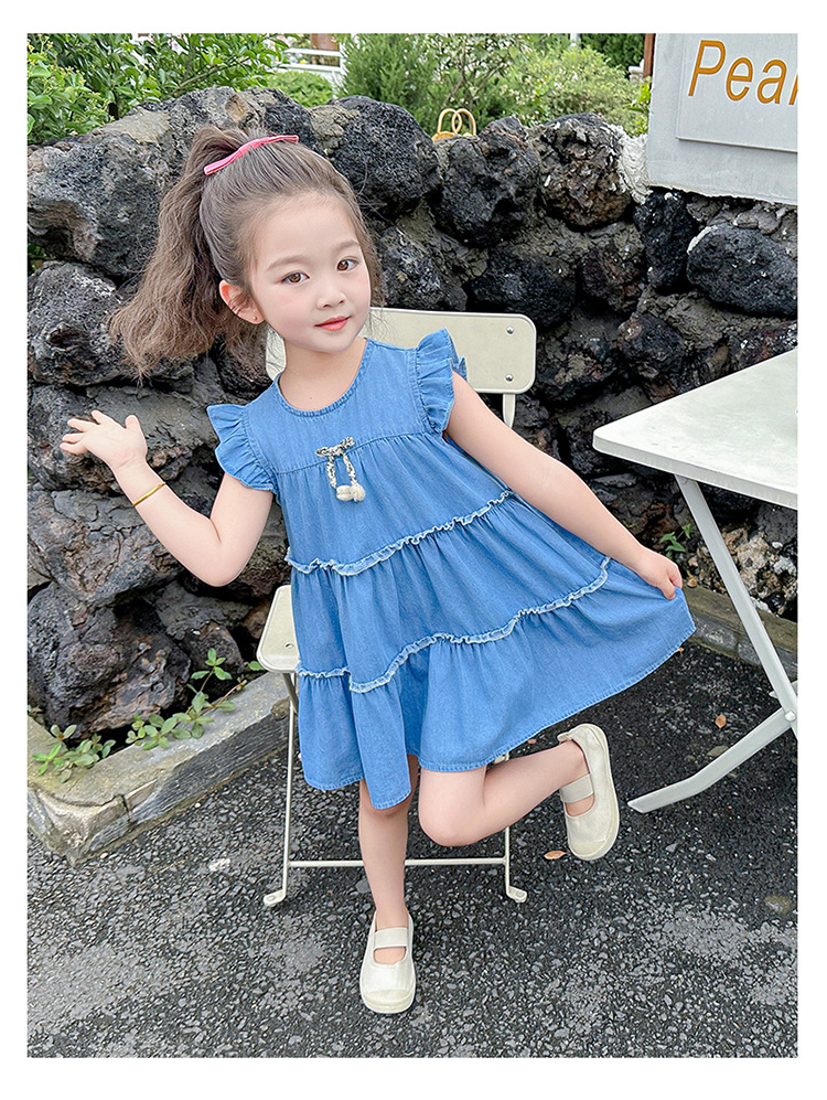 여아 여름 원피스 2025 신상 패션 소녀 데님 원피스 어린이 달콤한 공주 드레스스토어 가기