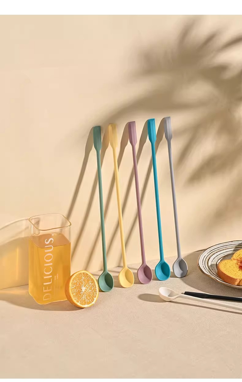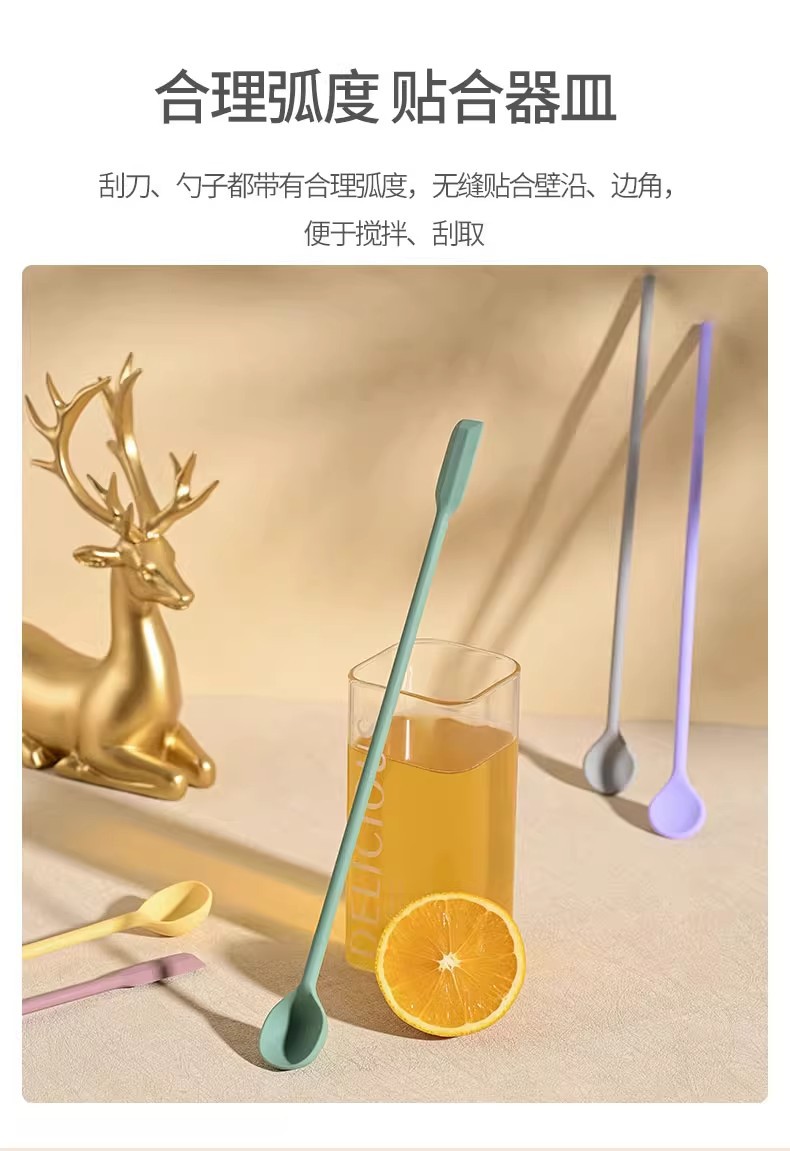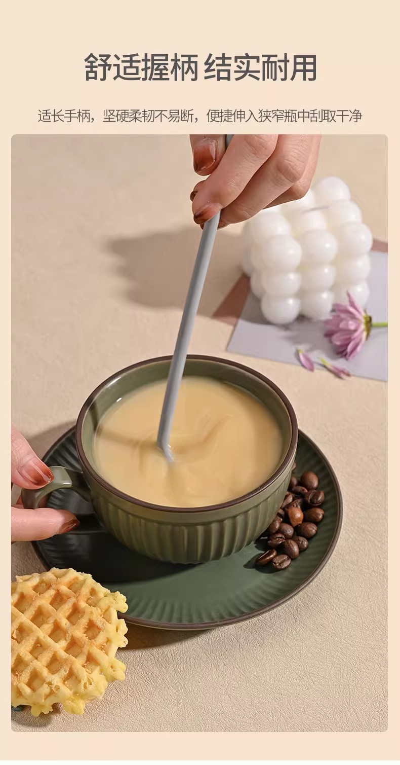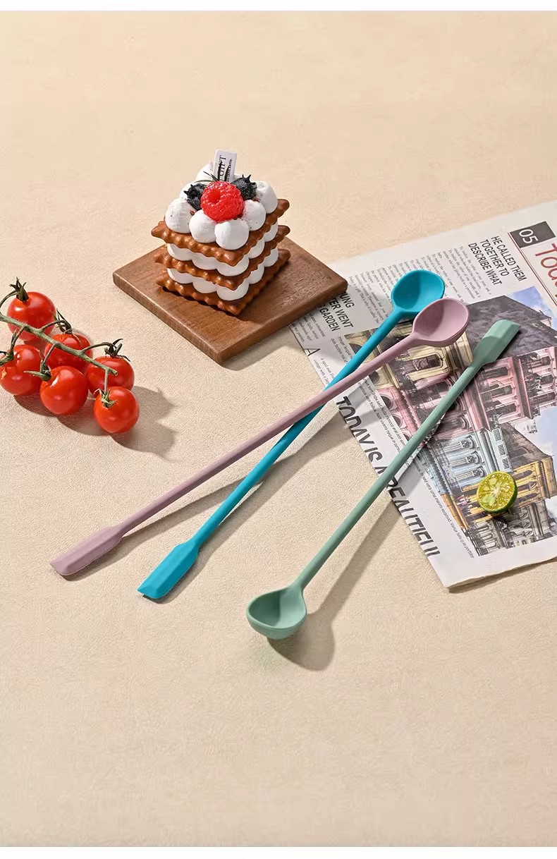 한국 식품 학년 실리콘 긴 손잡이 혼합 숟가락 우유 분말 커피 혼합 막대 양단 우유 혼합로드 스크레이퍼 혼합로드