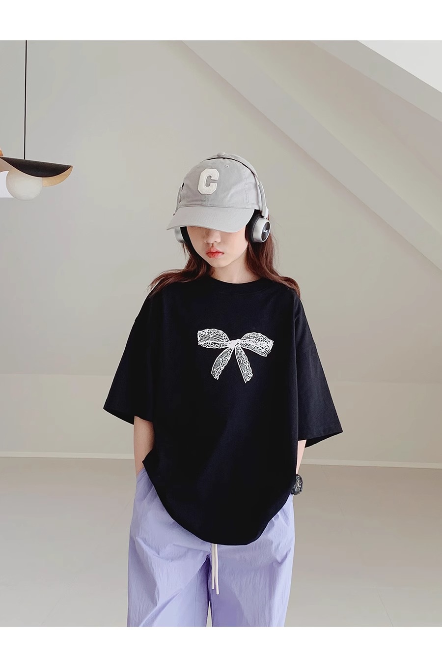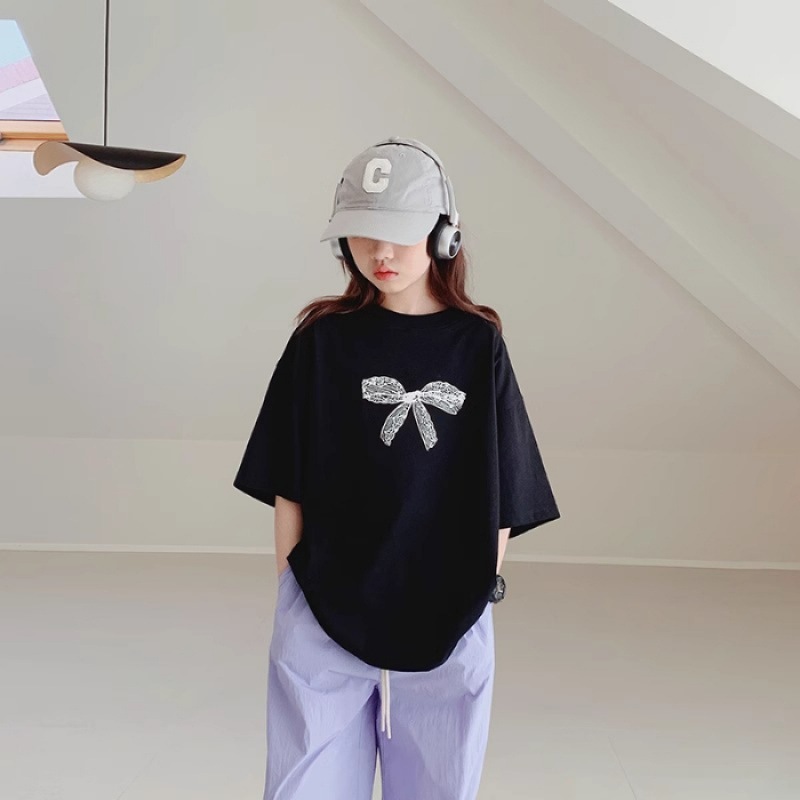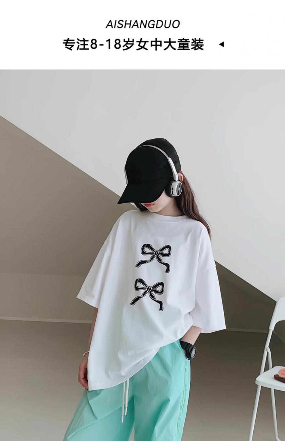 여아 티셔츠 2026 여름 신상품 여아 심플 한국 스타일 반팔 상의 아동 중학생 프린트 티셔츠 트렌디스토어 가기