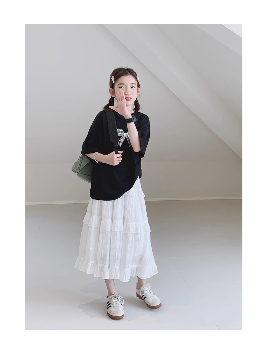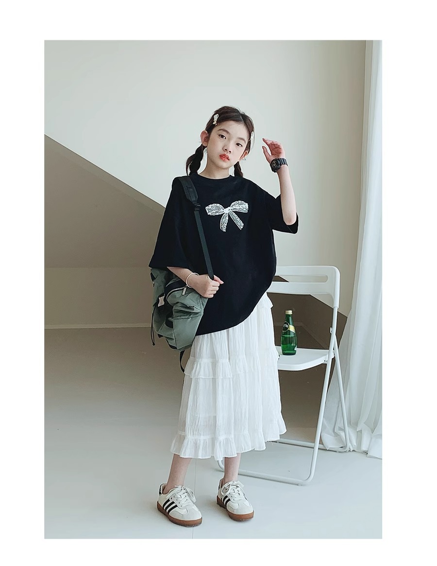 여아 티셔츠 2026 여름 신상품 여아 심플 한국 스타일 반팔 상의 아동 중학생 프린트 티셔츠 트렌디
