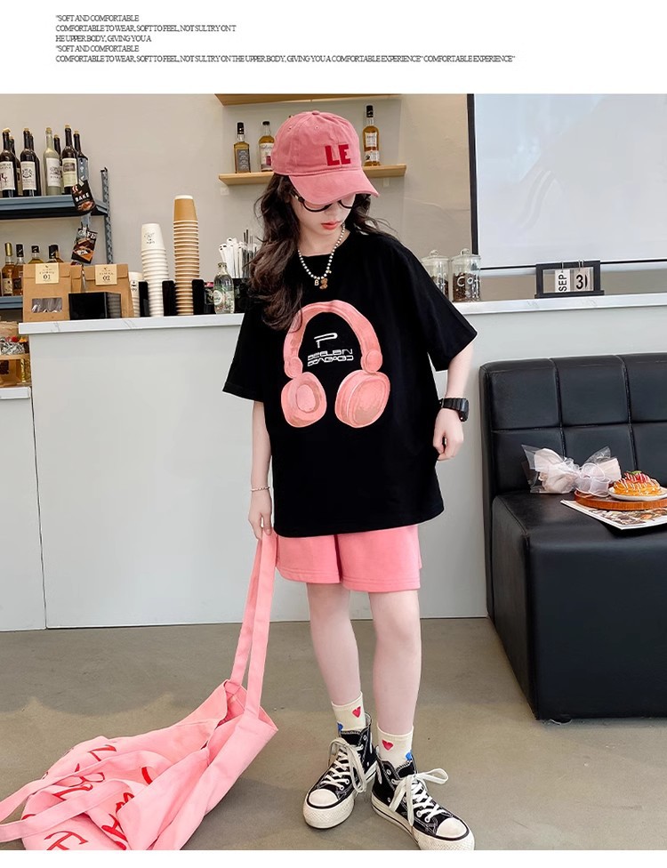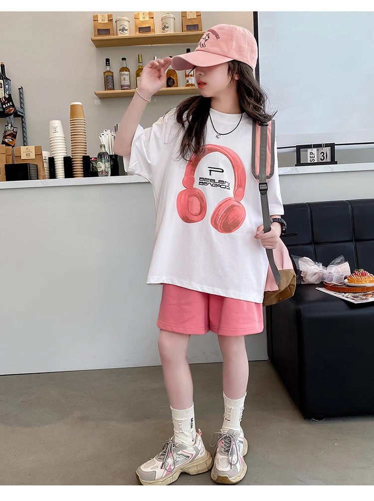 여자 여름 티셔츠 세트 큰 키즈 여름 새로운 한국 스타일 서양식 탑 짧은 소매 유행 반바지 투피스 세트스토어 가기