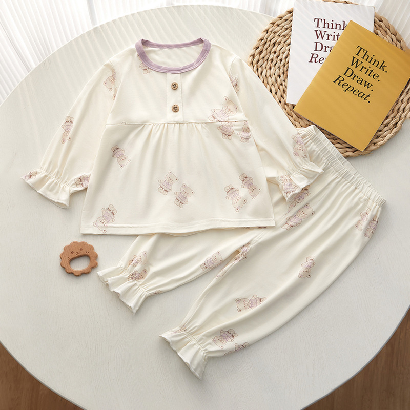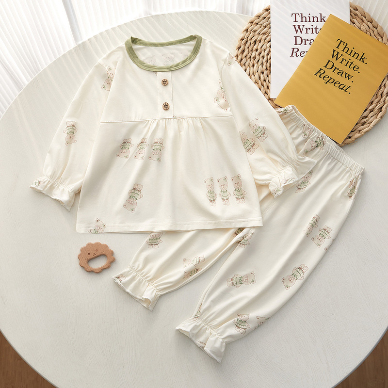 청바오 여름 어린이 잠옷 세트 란징 모달 큰 아이들 소녀 어린이 아기 잠옷 얇은 홈 옷