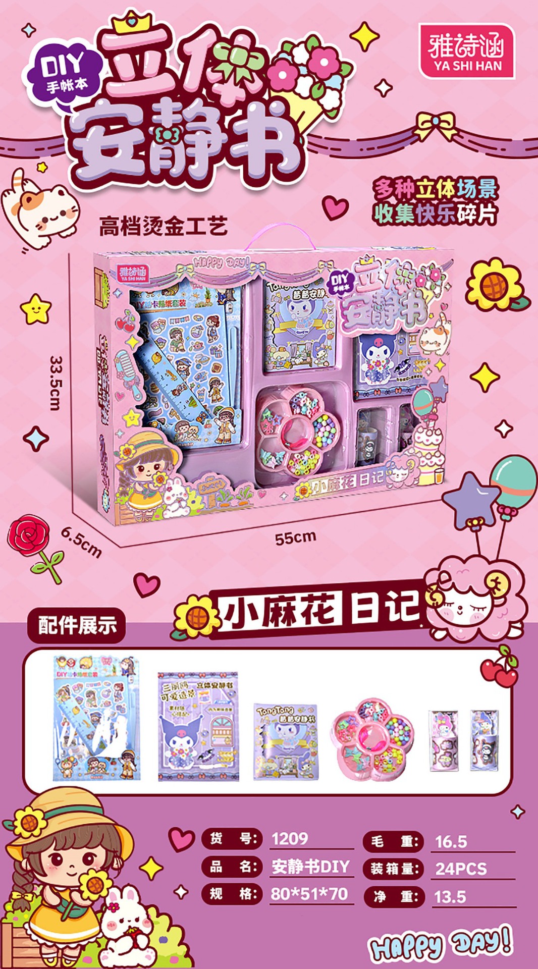 소녀 수제 DIY 3 차원 조용한 책 세트 어린이 장난감 크림 접착제 구슬 손 원장 선물 상자 도매