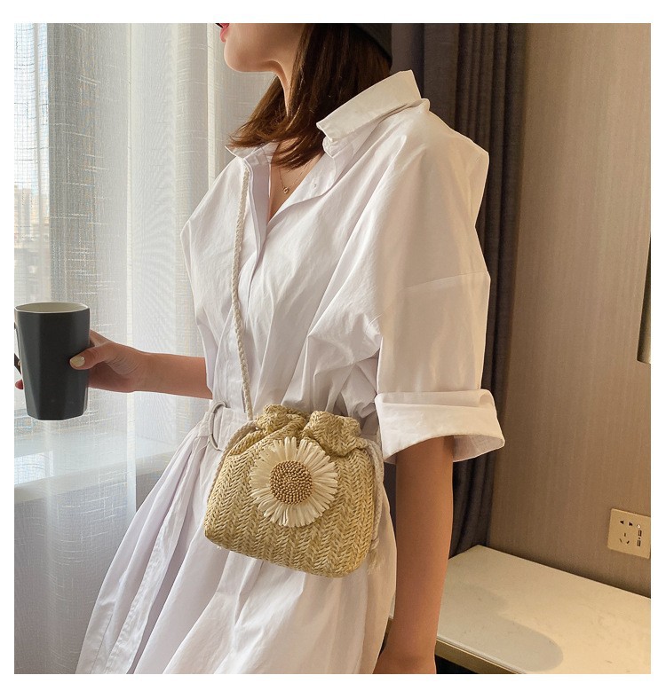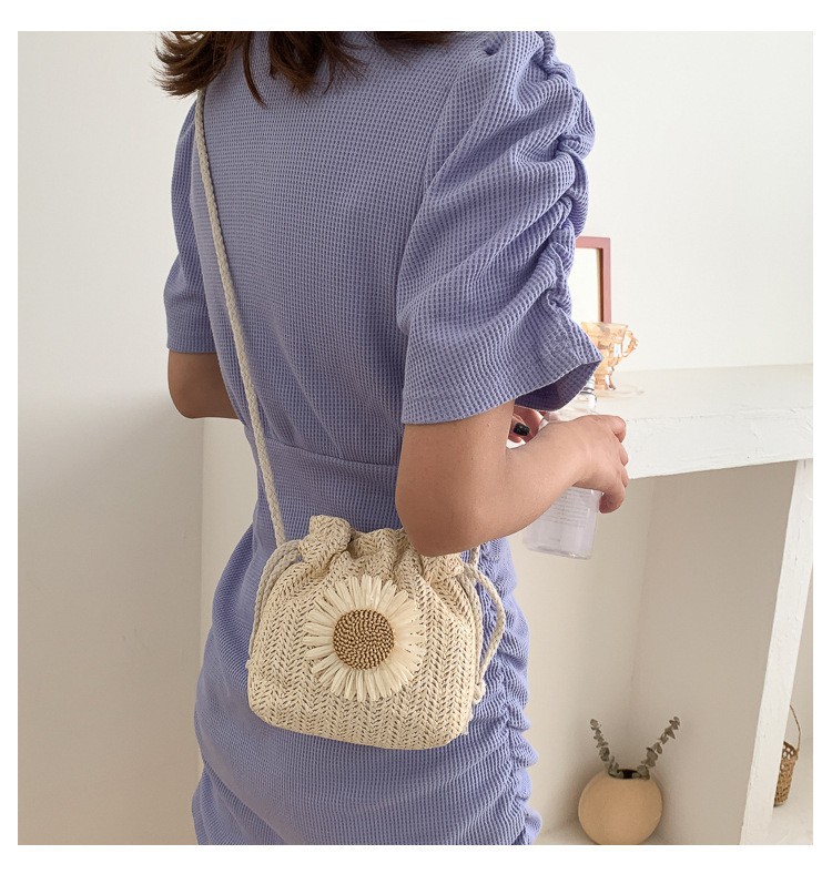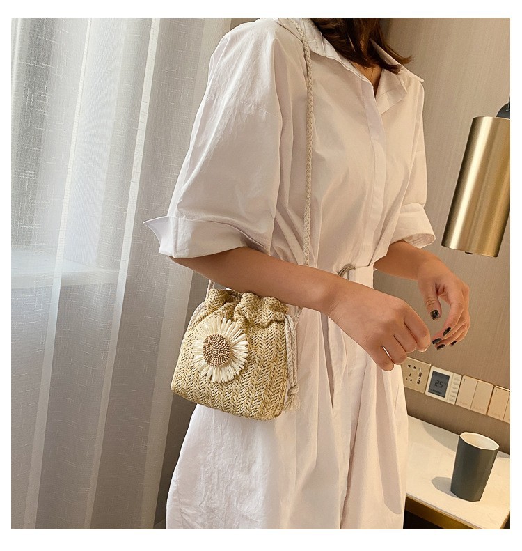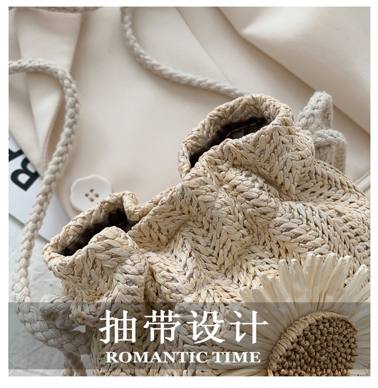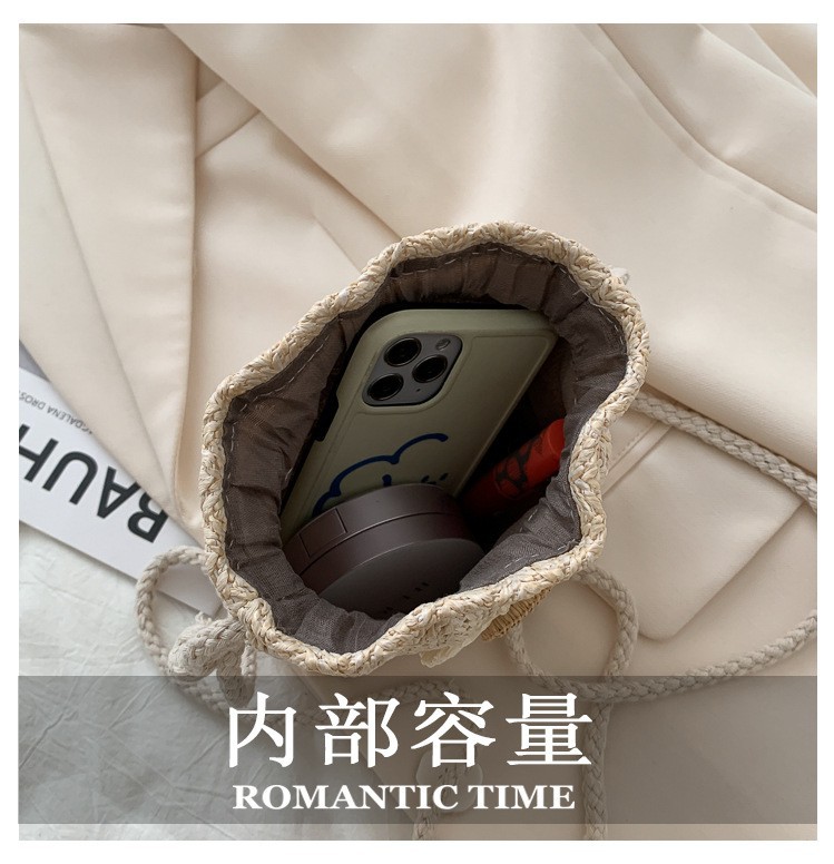 모리 스타일 짠 버킷 가방 여성 가방 새로운 2023 여름 밀짚 가방 크로스 가방 한국 스타일 귀여운 어깨 크로스 백스토어 가기