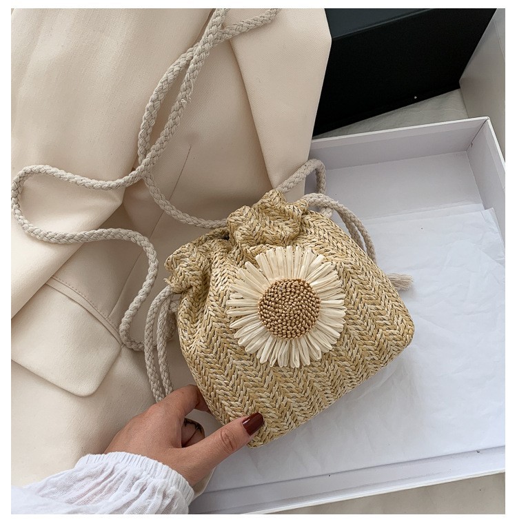 모리 스타일 짠 버킷 가방 여성 가방 새로운 2023 여름 밀짚 가방 크로스 가방 한국 스타일 귀여운 어깨 크로스 백