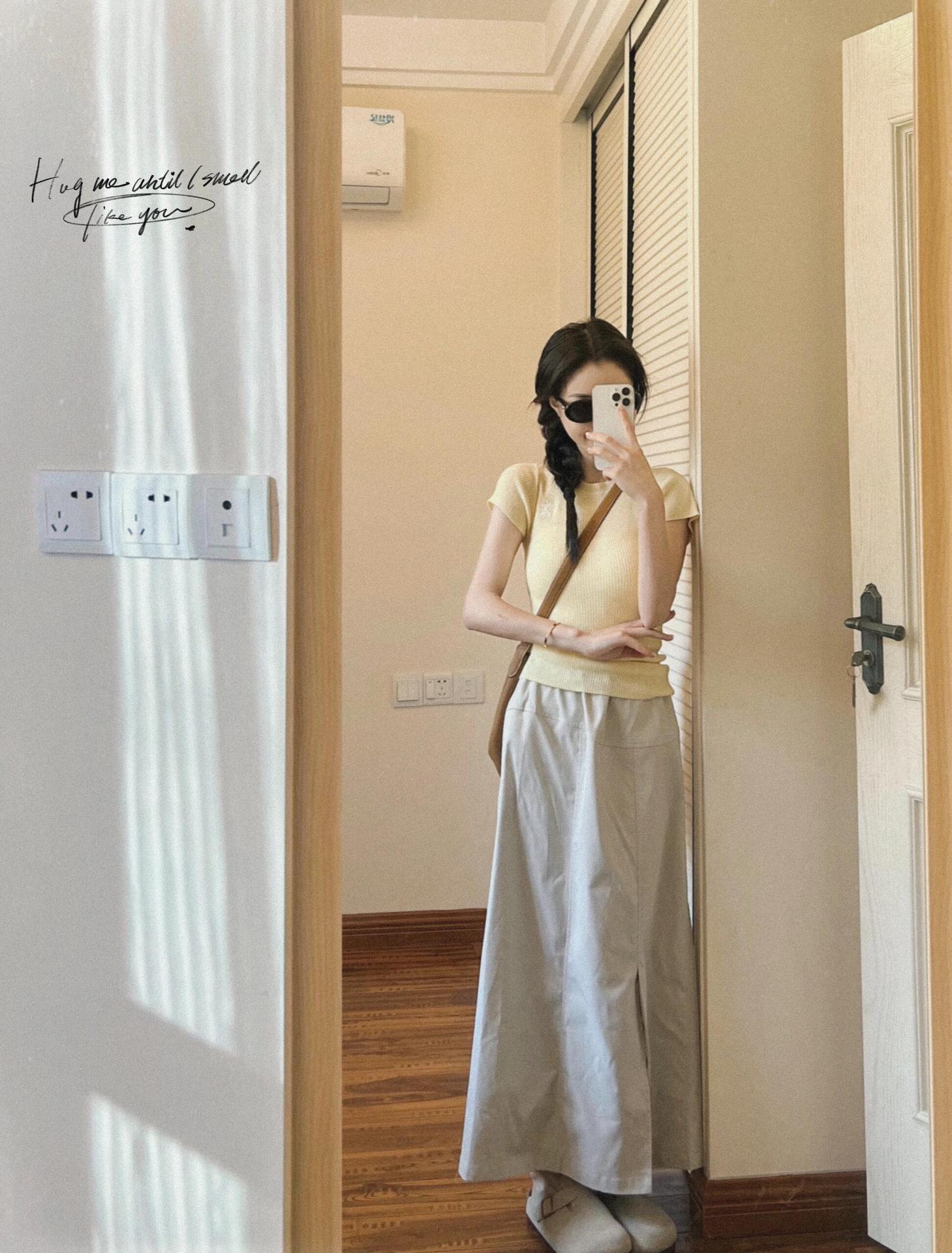 아메리칸 스타일 레트로 높은 허리 작업 원피스 스커트 여성 여름 엘라프 토 허리 작은 A 라인 스커트 엉덩이 커버 긴 스커트스토어 가기