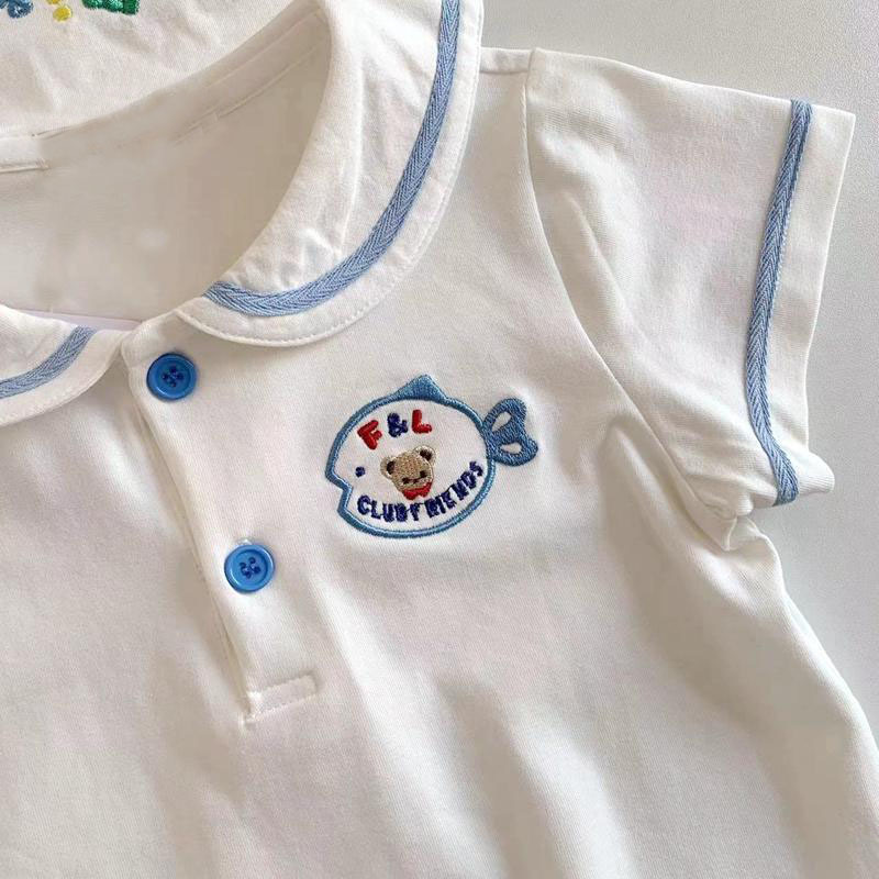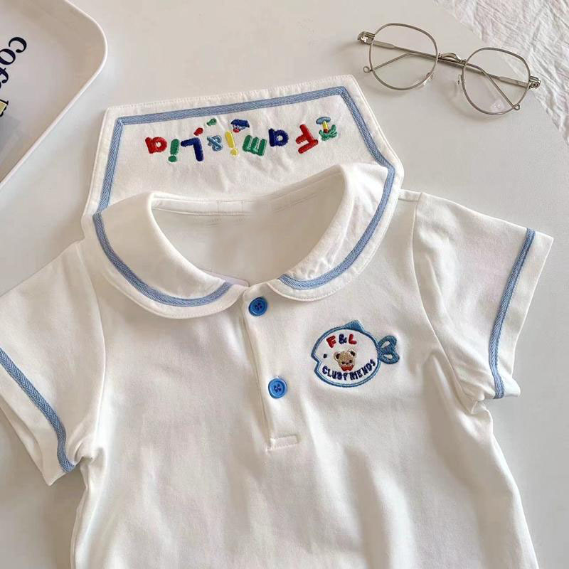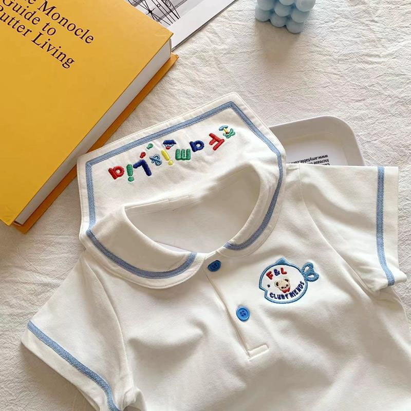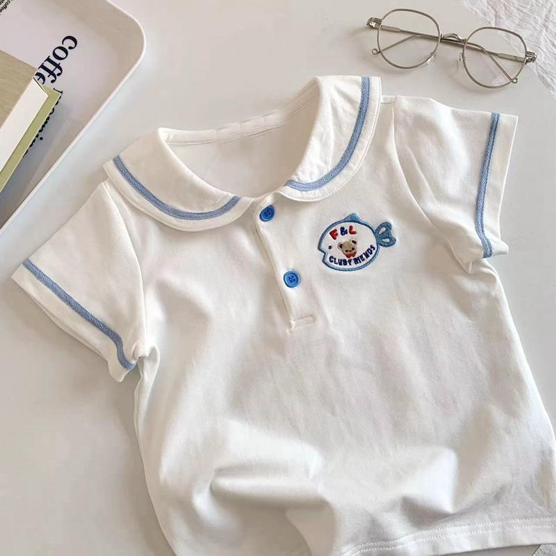 소년과 소녀를위한 여름 새 스타일 옷깃 반팔면 티셔츠 일본 여름 옷 어린이 면화 흰색 반팔 탑 아기 티셔츠