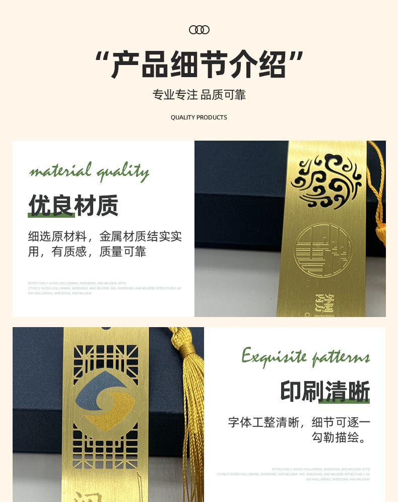 중국 스타일의 고전 창조적 인 선물 금속 황동 책갈피 기업 학교 문화 맞춤형 레이저 로고 책갈피스토어 가기