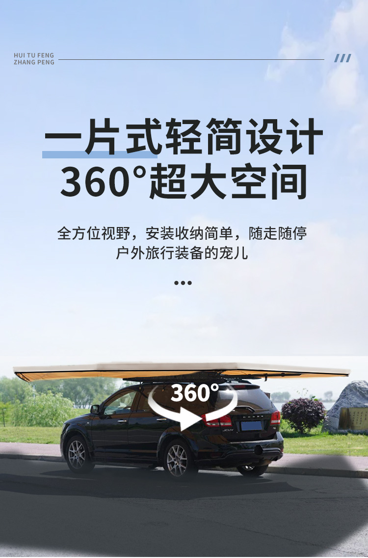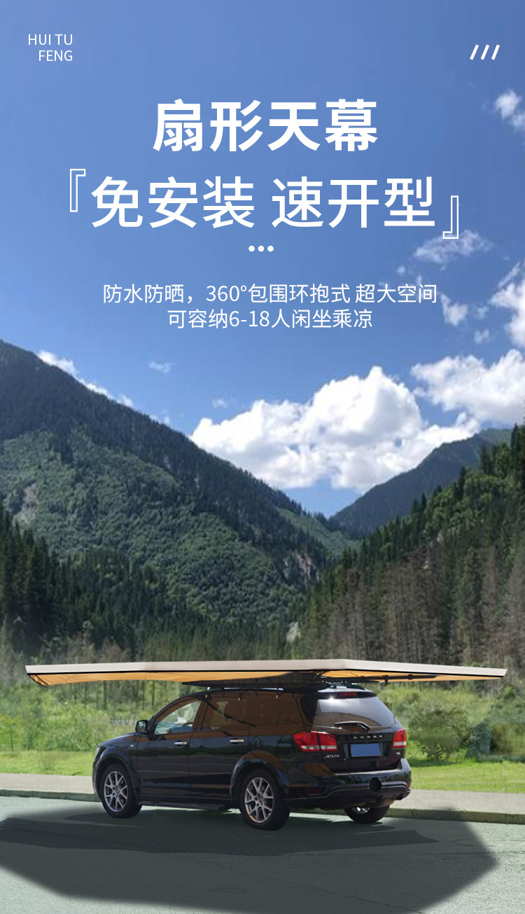 자동차 사이드 텐트 빠른 오프닝 야외 캠핑 사이드 텐트 팬 모양의 360 도 SUV 완전 자동 하드 탑 카 사이드 스카이 커튼 텐트