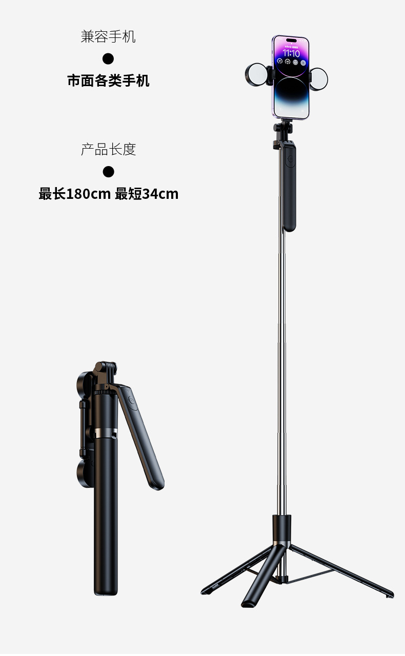 국경 간 폭발성 셀카 스틱 싱글 축 셀카 아티팩트 텔레스코픽 로드 휴대용 블루투스 라이트 공급 브래킷 삼각대 셀카