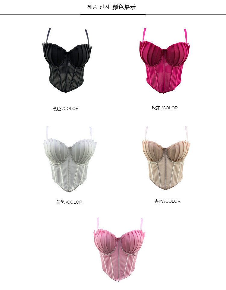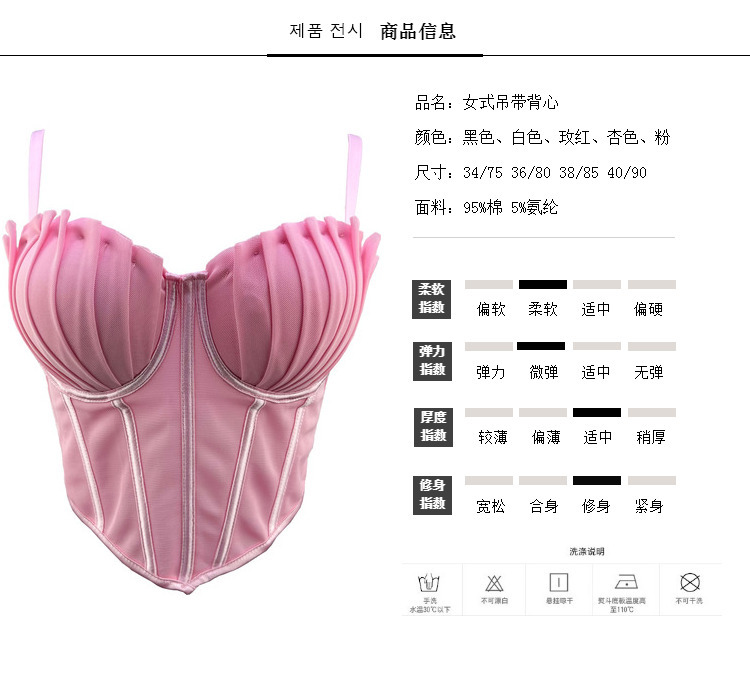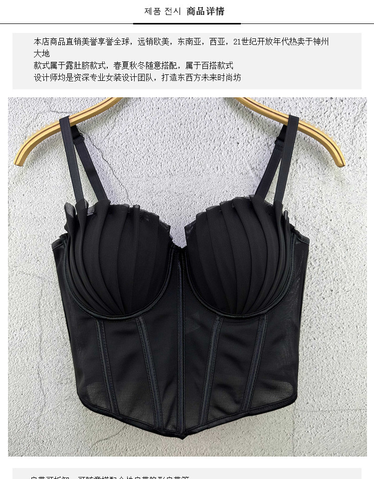 유럽과 미국의 여름 새로운 스타일 메쉬 접힌 섹시한 Fishbone Camisole 여성베이스 내부 착용 짧은 정상스토어 가기