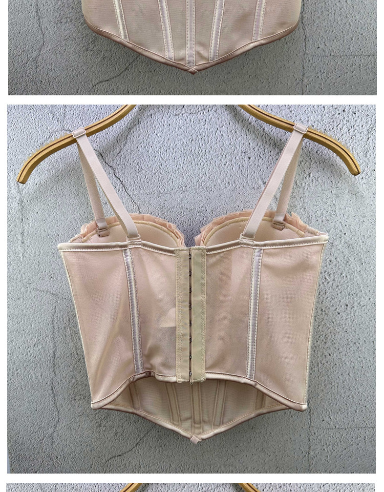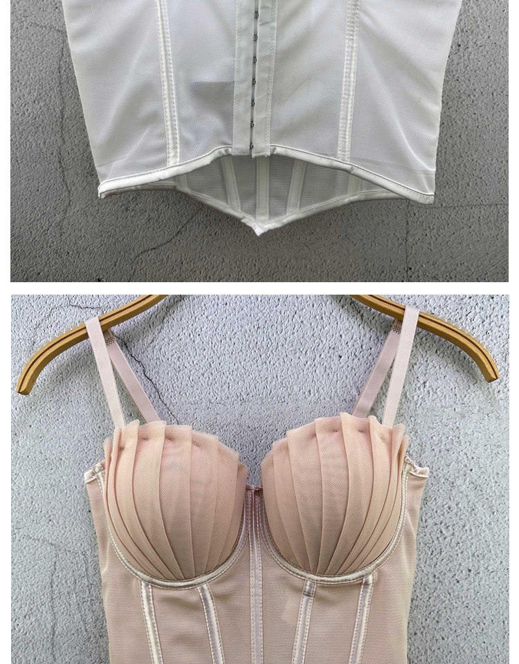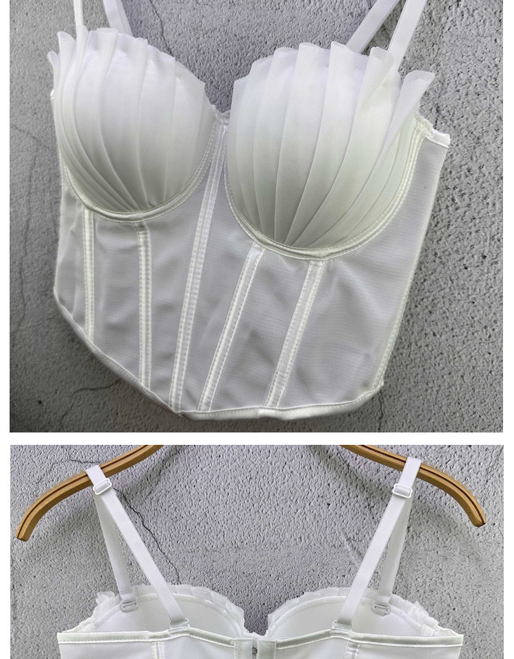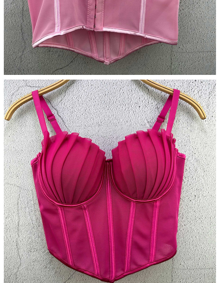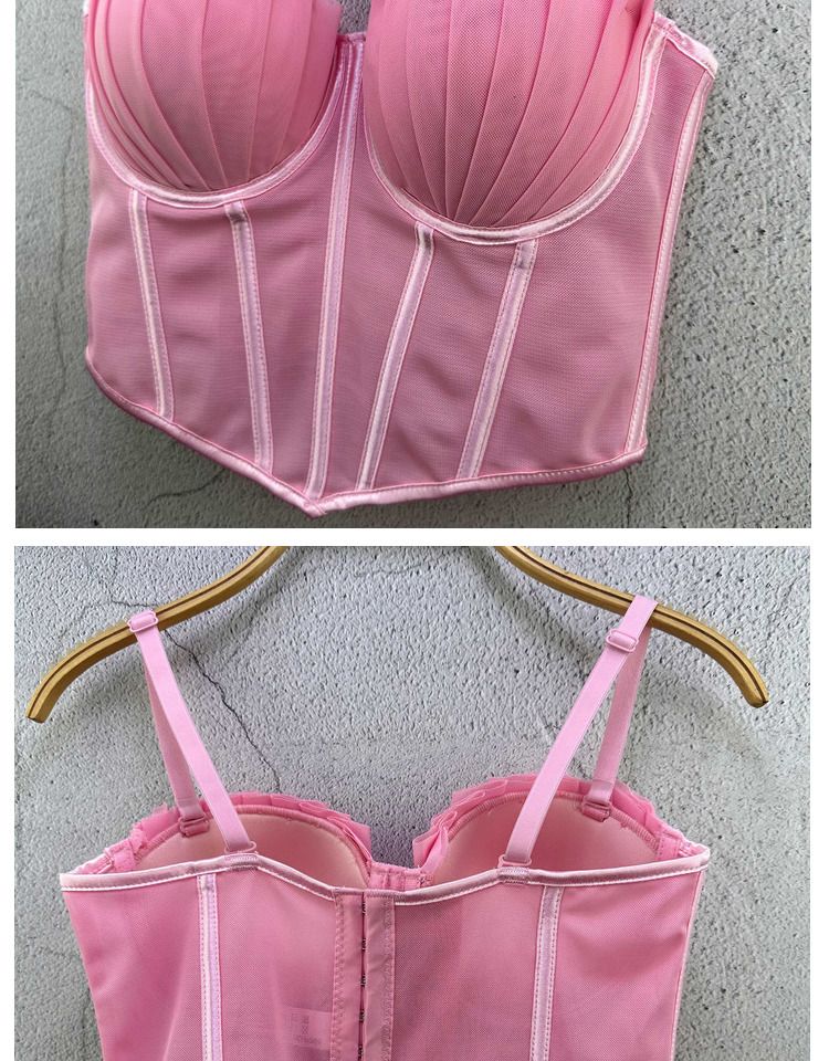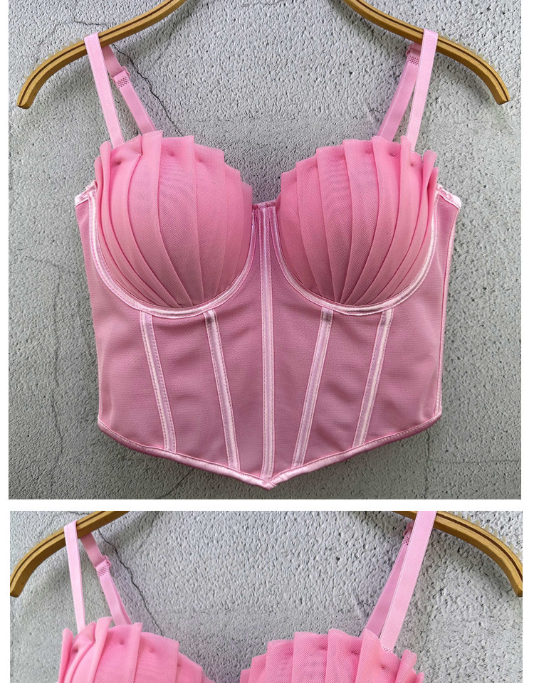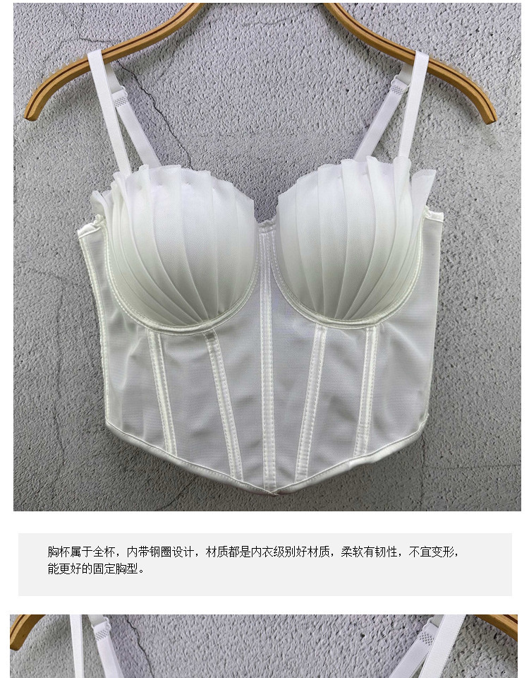 유럽과 미국의 여름 새로운 스타일 메쉬 접힌 섹시한 Fishbone Camisole 여성베이스 내부 착용 짧은 정상