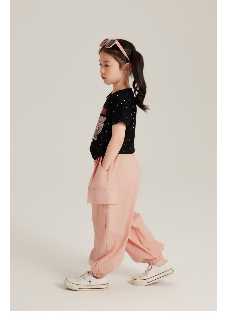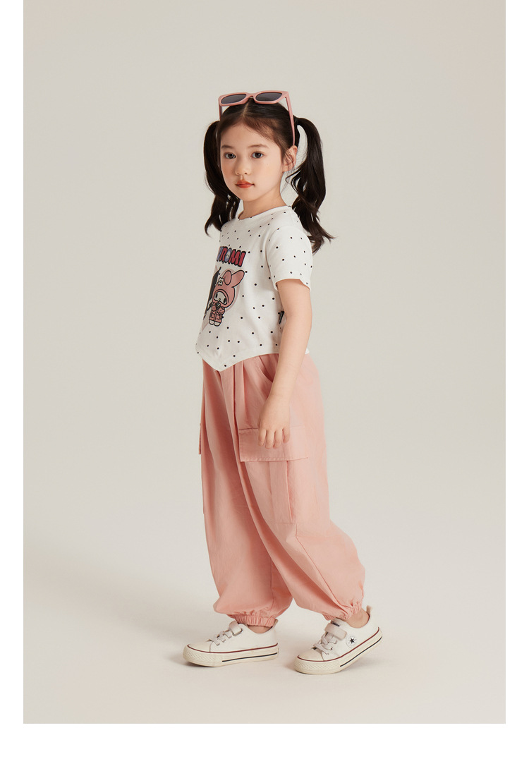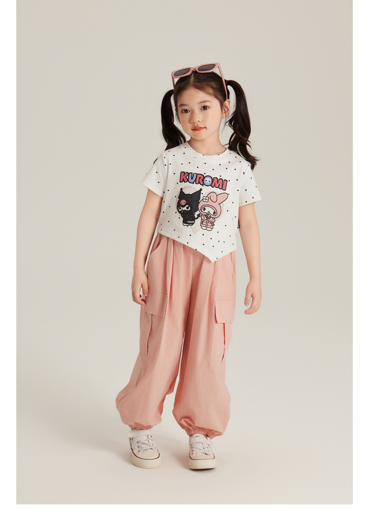 Amybaby Girls 'T 셔츠 2024 새로운 어린이 만화 인쇄 불규칙한 대조 폴카 도트 짧은 소매 탑