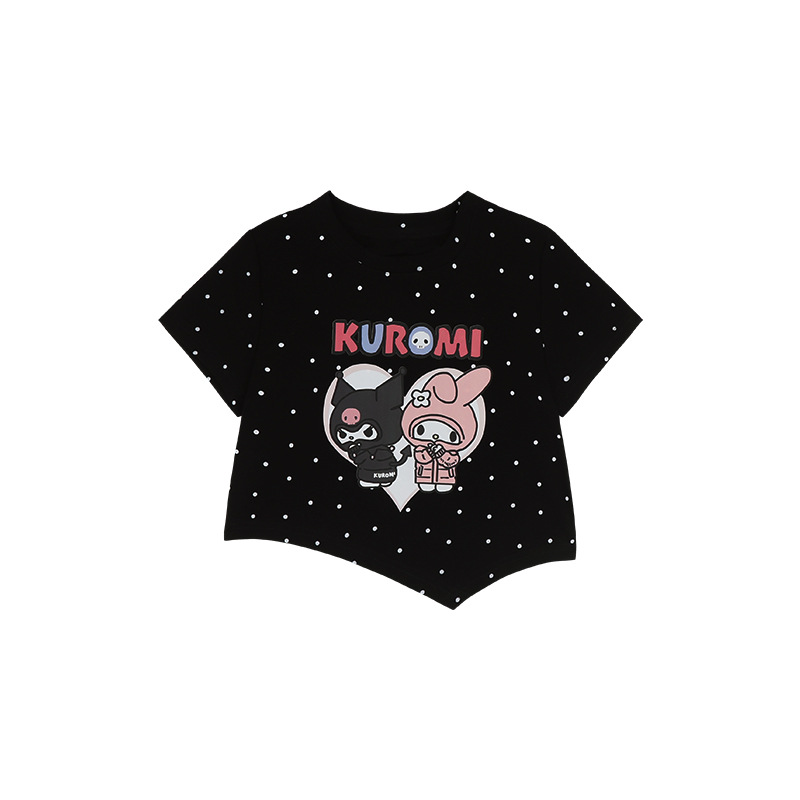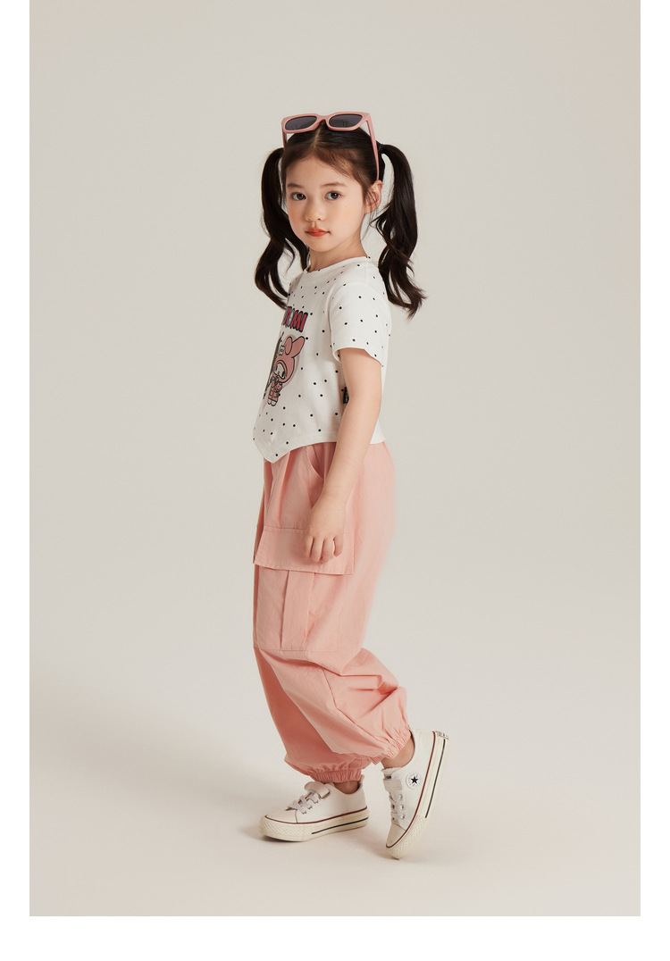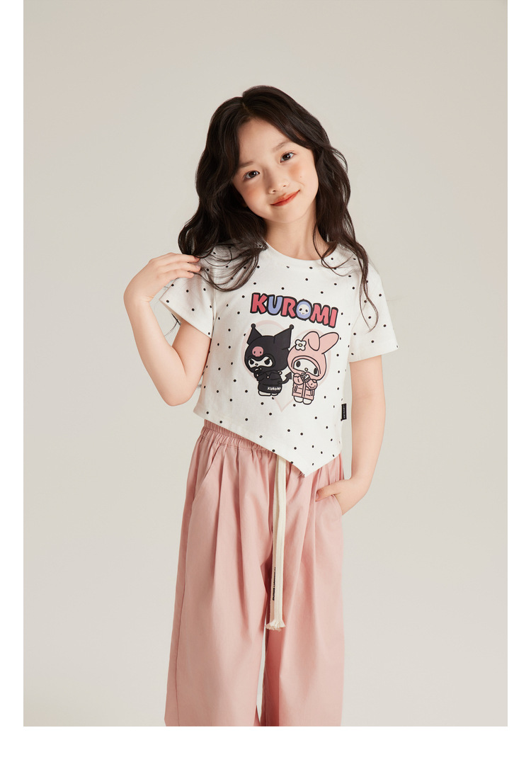 Amybaby Girls 'T 셔츠 2024 새로운 어린이 만화 인쇄 불규칙한 대조 폴카 도트 짧은 소매 탑스토어 가기