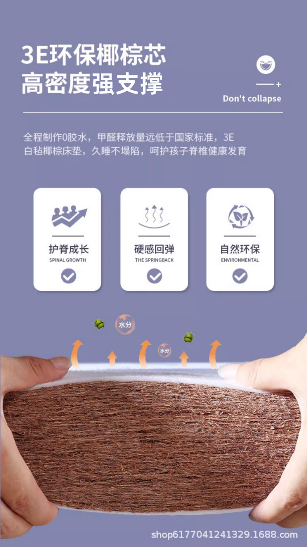 가정용 척추 보호 어린이 팜 매트리스 유치원 천연 환경 보호 3E 코코넛 팜 매트리스 아기 싱글 매트리스 도매스토어 가기