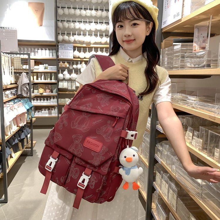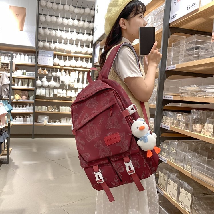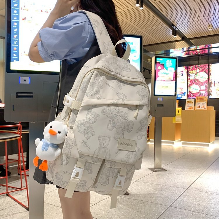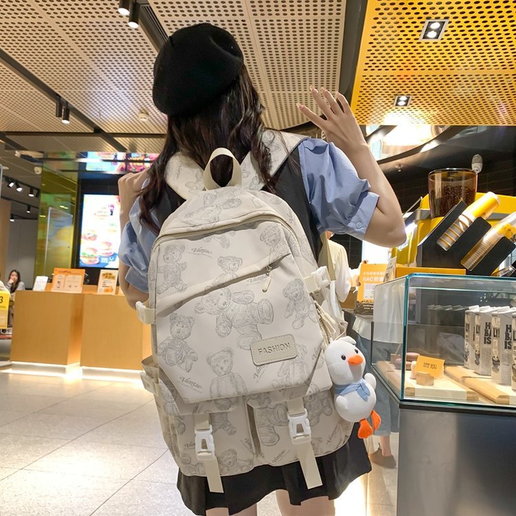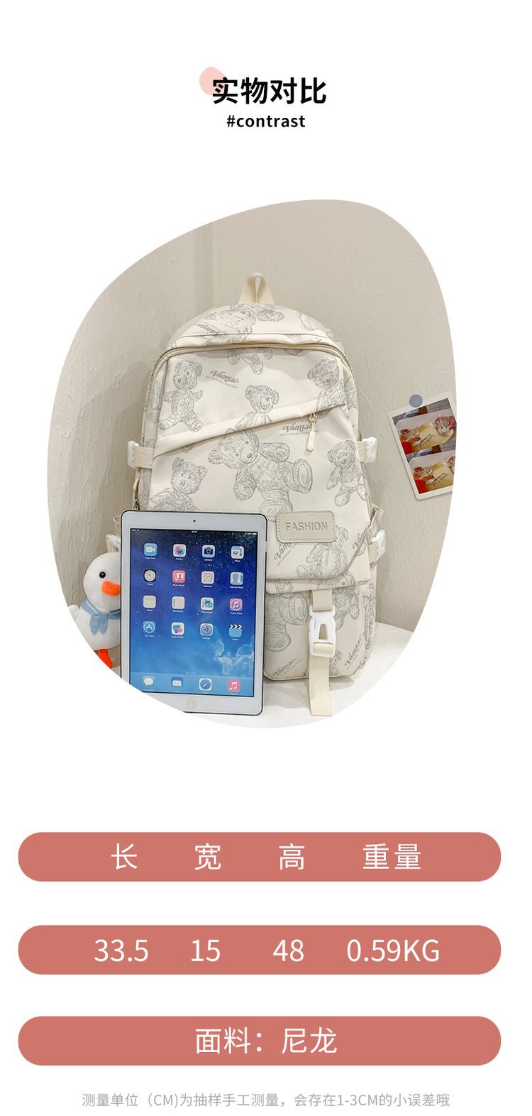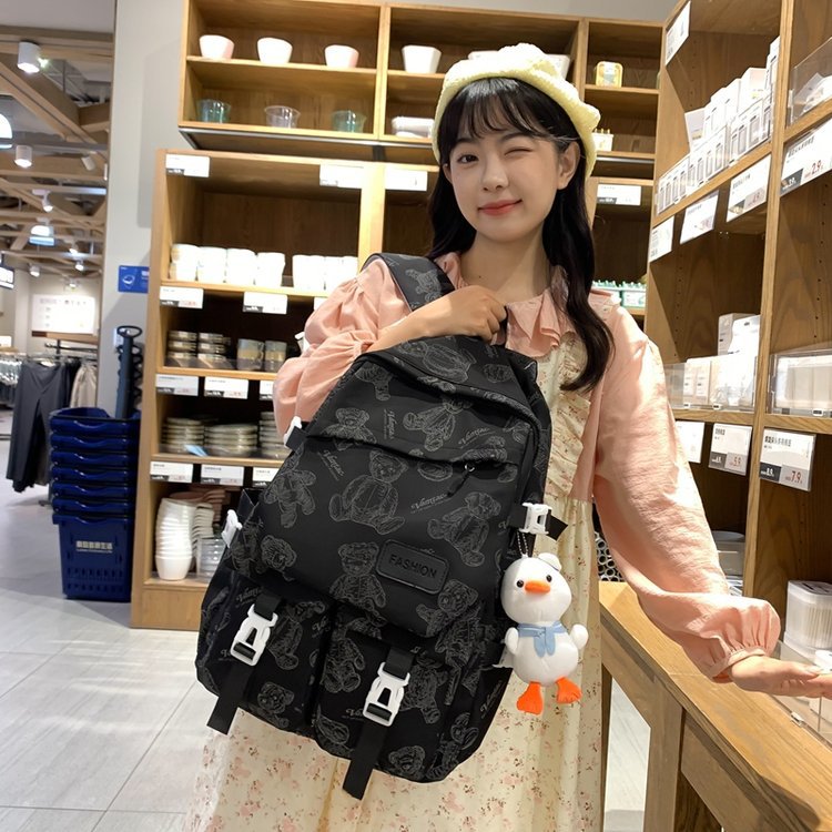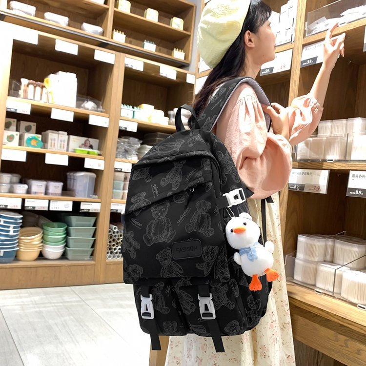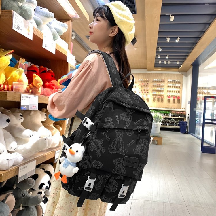 중학생을위한 새로운 간단한 올 매치 인쇄 곰 대용량 고가치 배낭스토어 가기