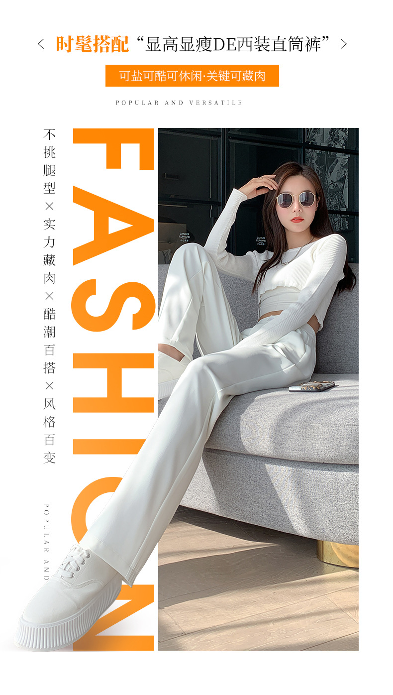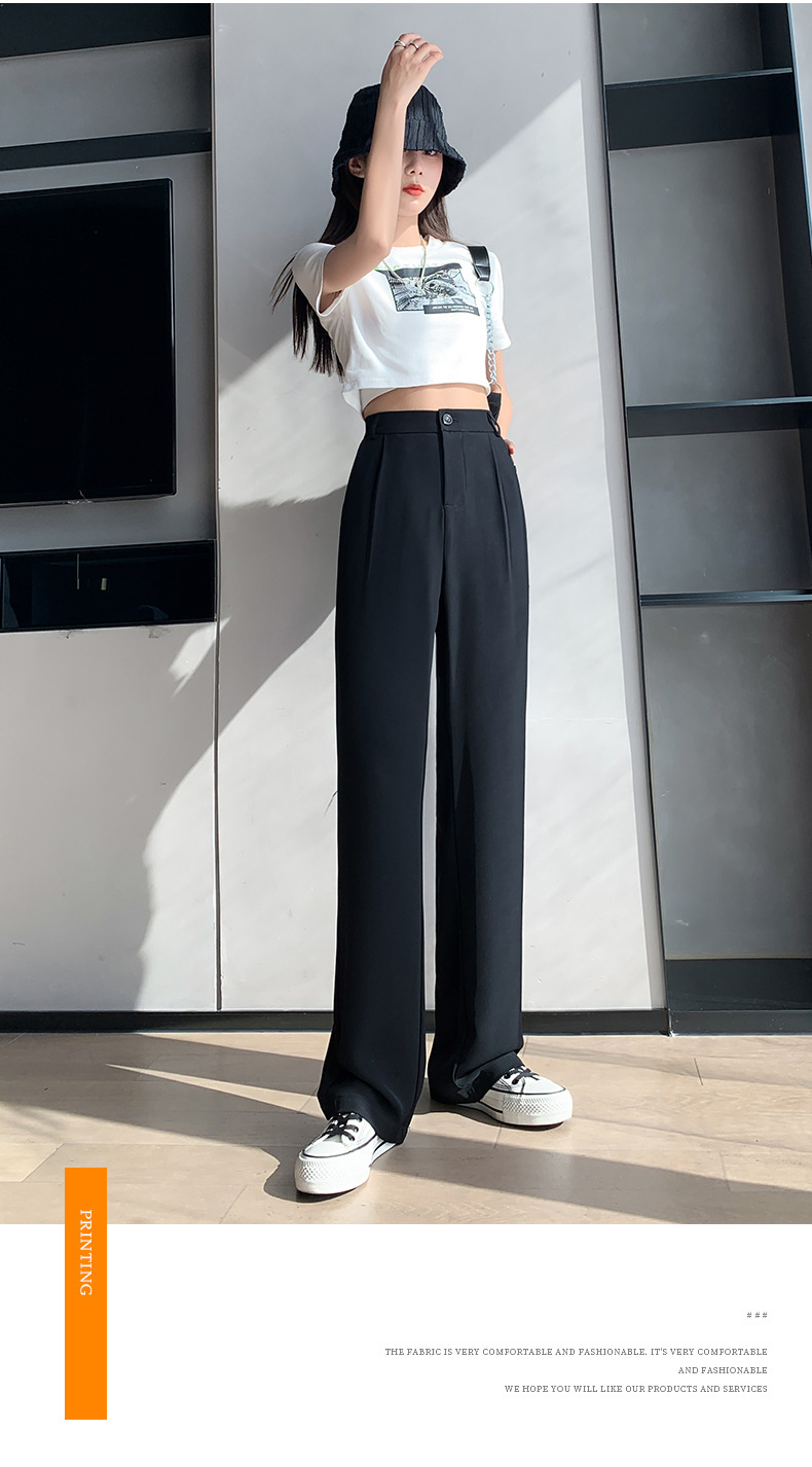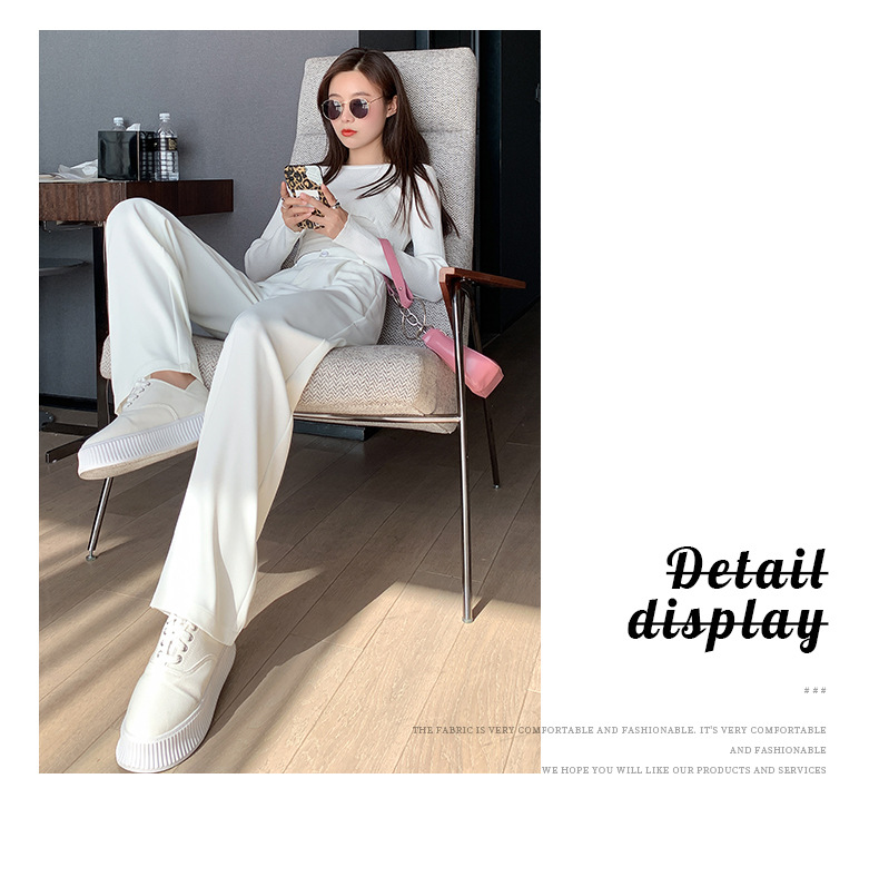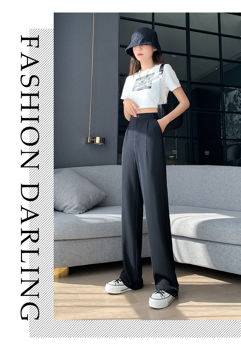 흰색 세트 넓은 다리 바지 여성의 여름 얇은 작은 바지 높은 허리 Daggy 느슨한 캐주얼 자른 스트레이트 바지스토어 가기