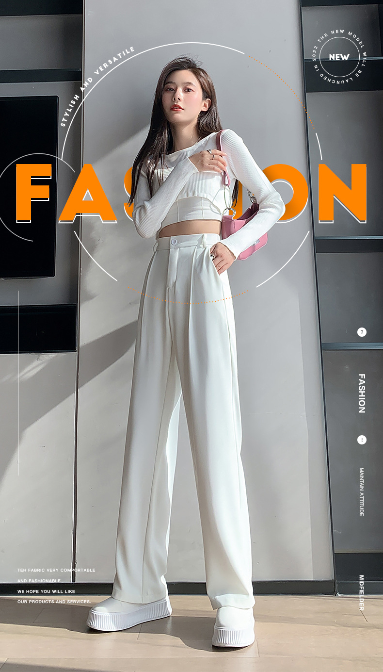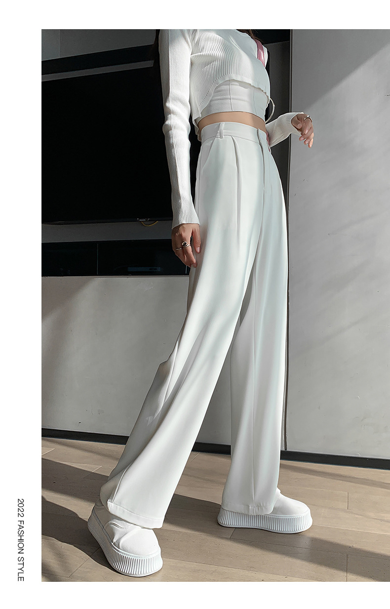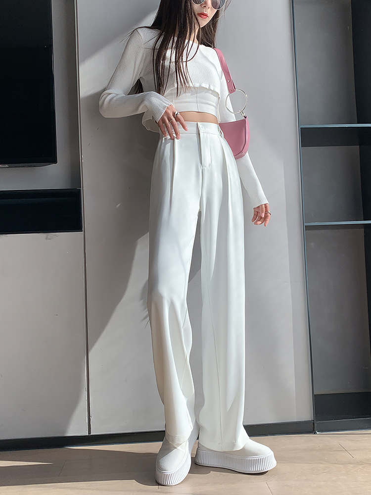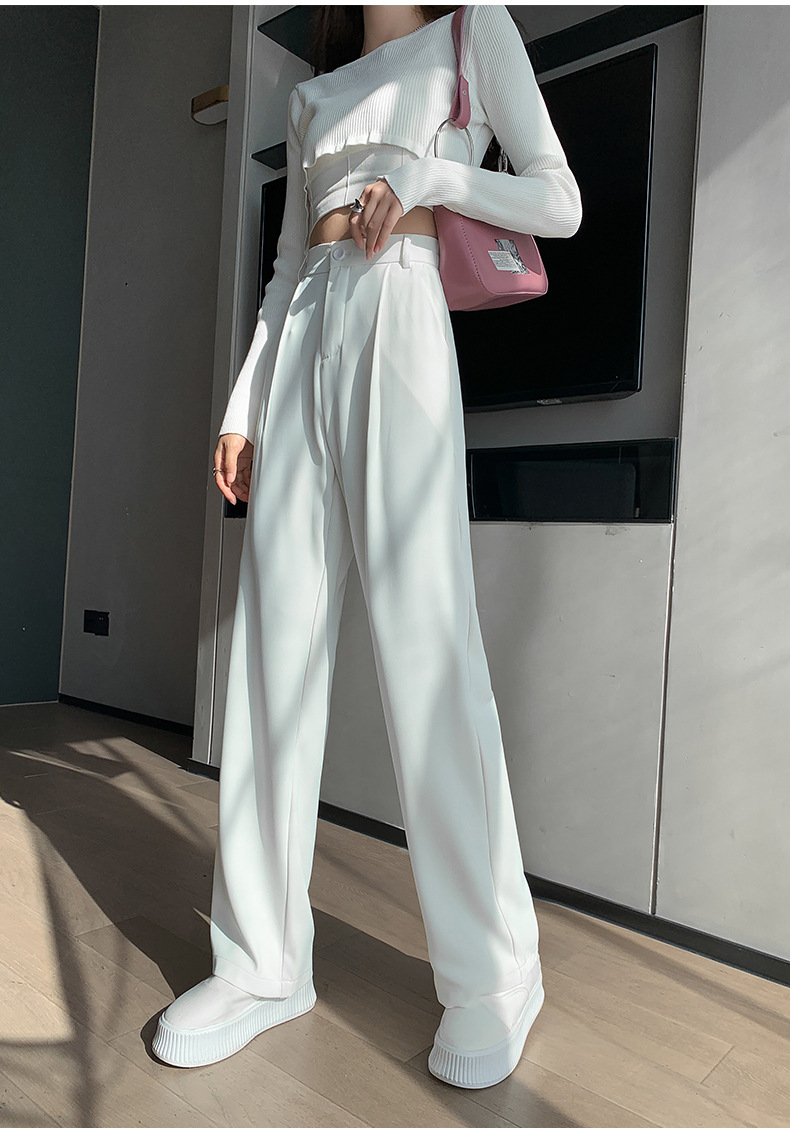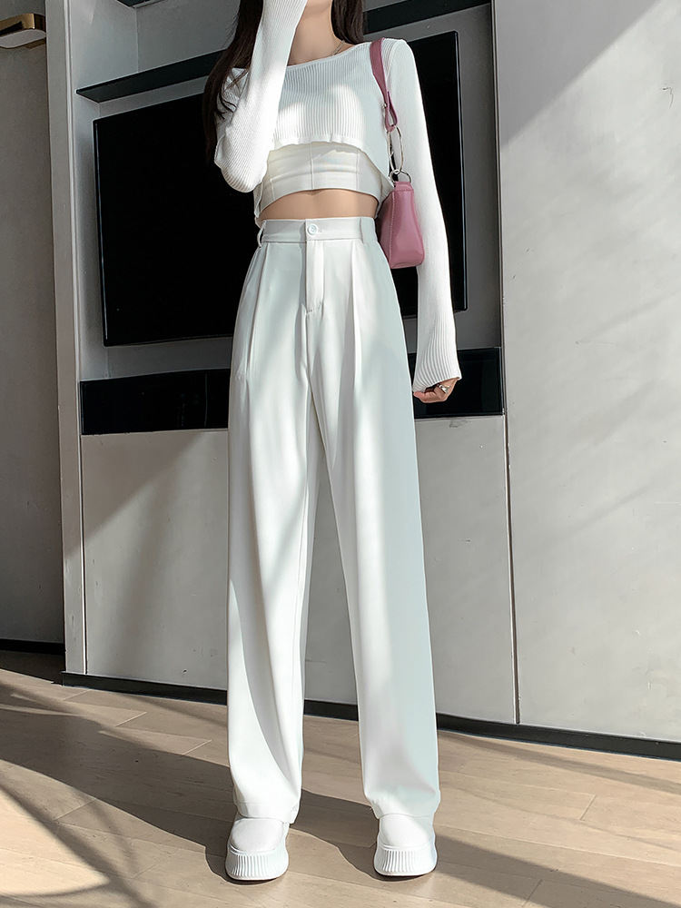 흰색 세트 넓은 다리 바지 여성의 여름 얇은 작은 바지 높은 허리 Daggy 느슨한 캐주얼 자른 스트레이트 바지