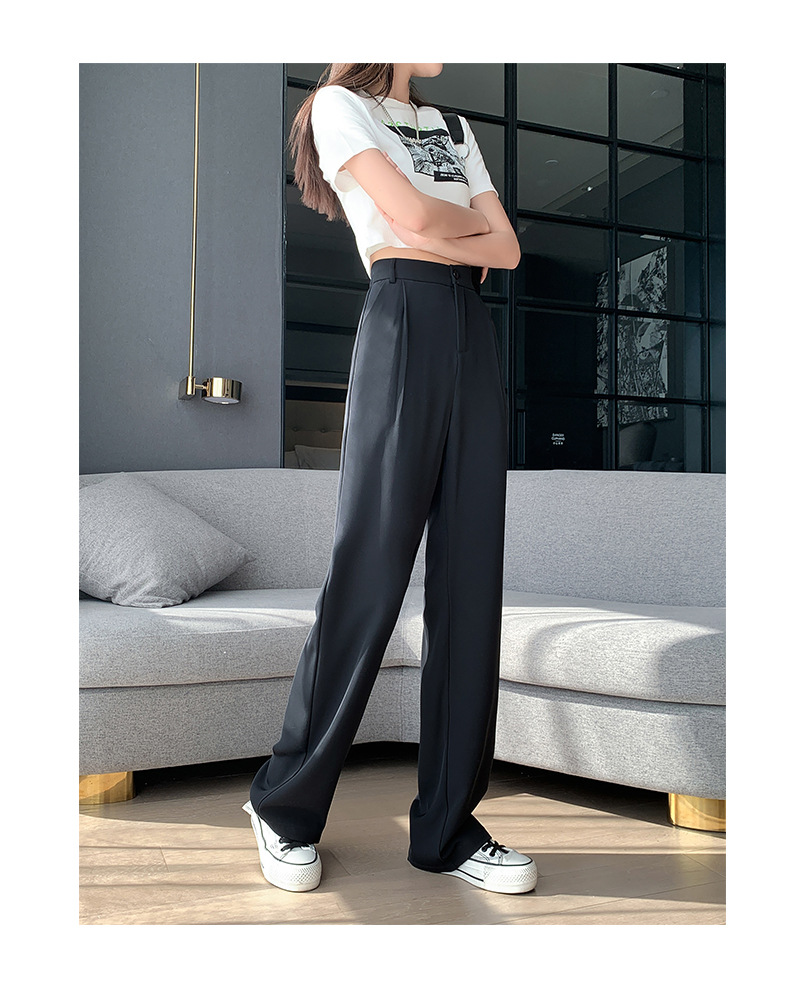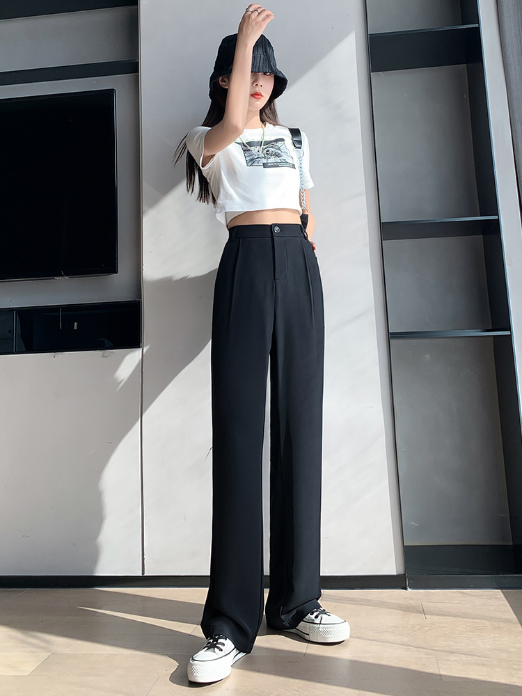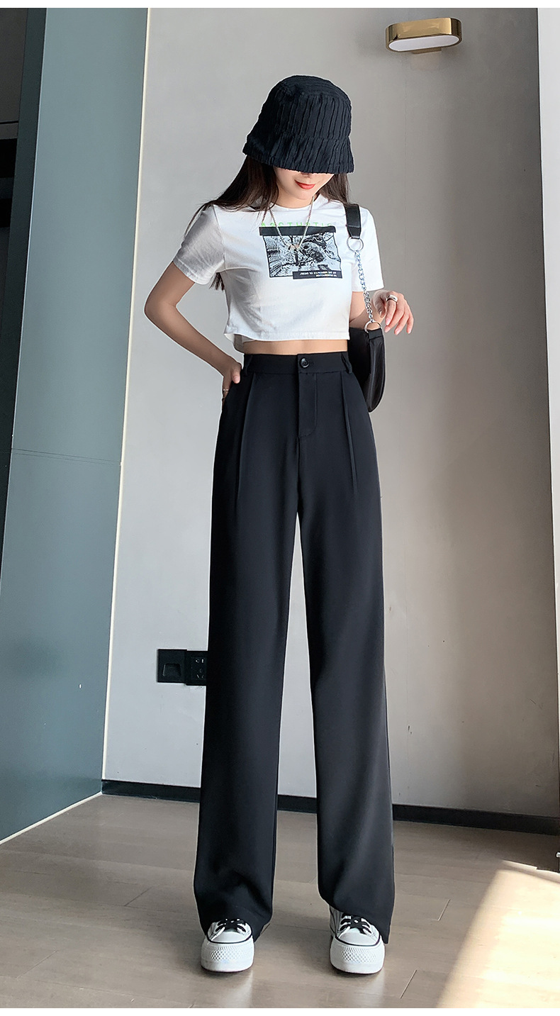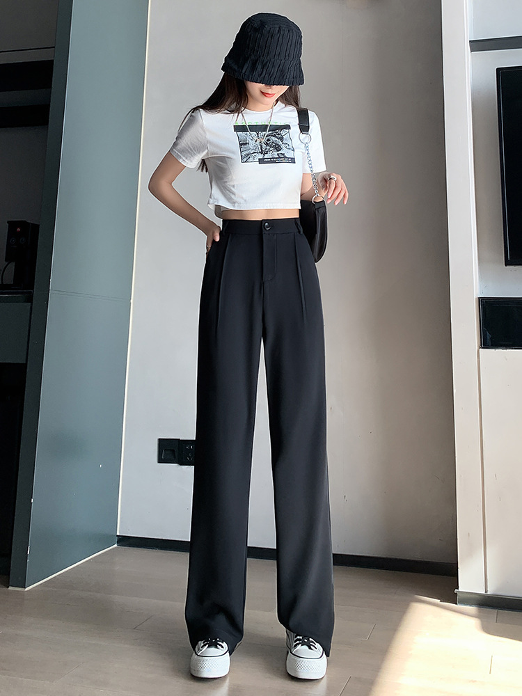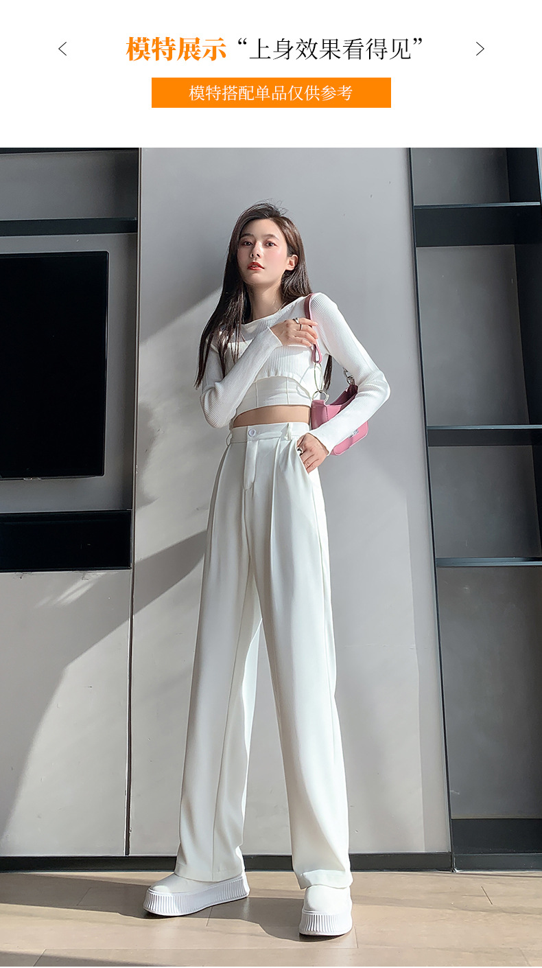 흰색 세트 넓은 다리 바지 여성의 여름 얇은 작은 바지 높은 허리 Daggy 느슨한 캐주얼 자른 스트레이트 바지