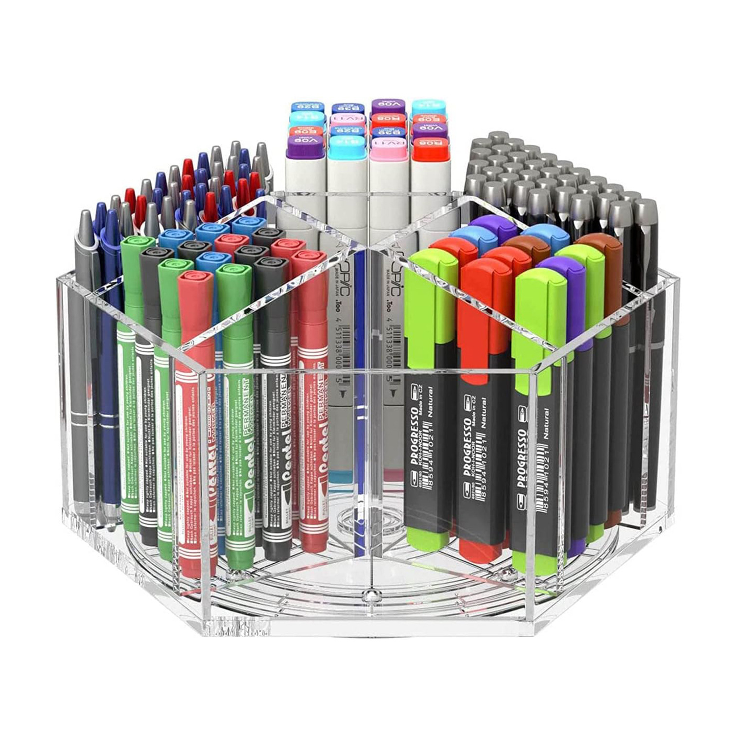 아크릴 회전식 수납함 투명 육각형 칸막이 마커펜 수납함 사무용품 수납함 화장 브러쉬 수납함