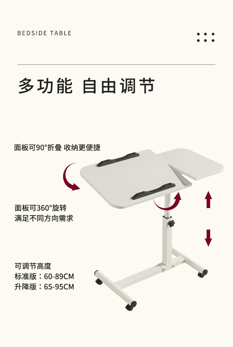 이동식 침대 옆 테이블 침대 옆 소파 옆 컴퓨터 높이 조절 테이블 가정용 침실 학생 학습용 접이식