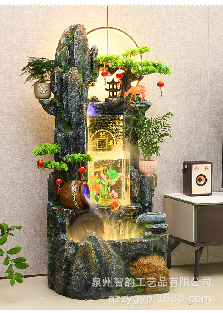 암석 분수 조롱박 흐르는 물 장식품 순환 물 탱크 거실 사무실 행운 착륙 장식 풍경 선물