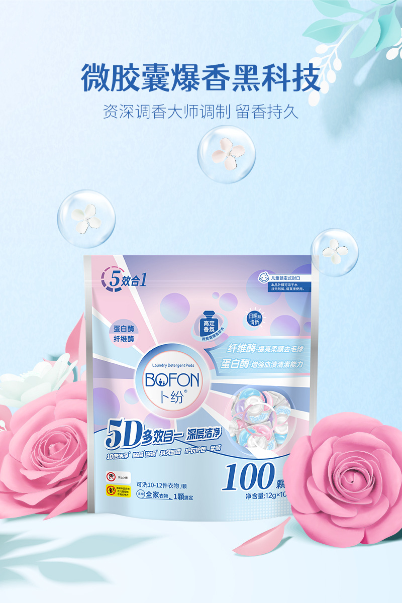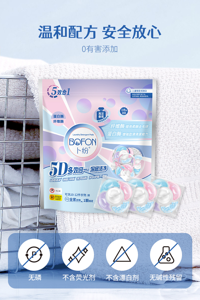 5 챔버 세탁 구슬 지속 향기로운 구슬 세탁 공 8 배 깨끗한 살균 및 진드기 제거 멀티 효과 농축 세탁 세제스토어 가기