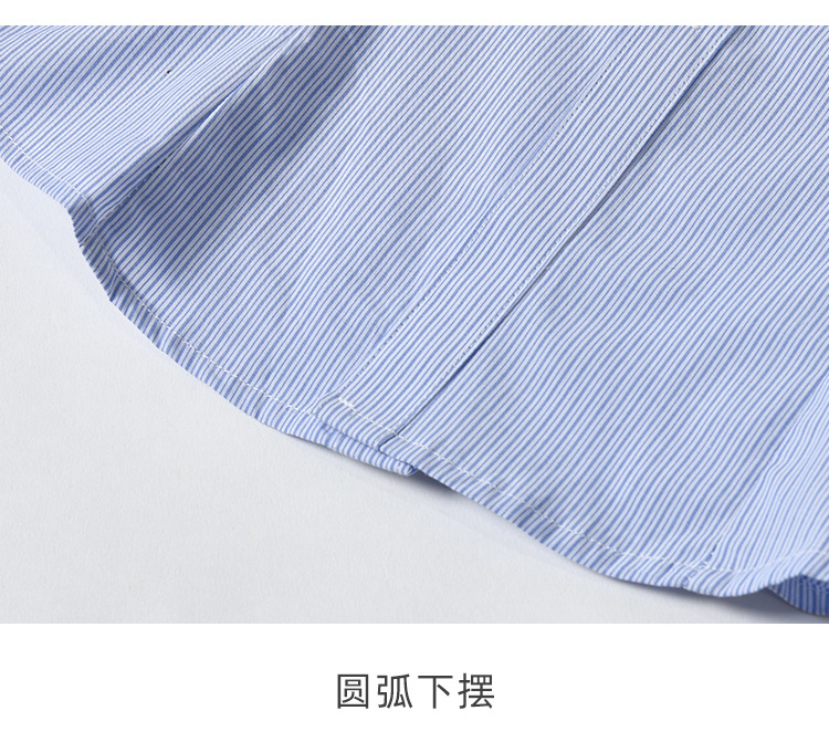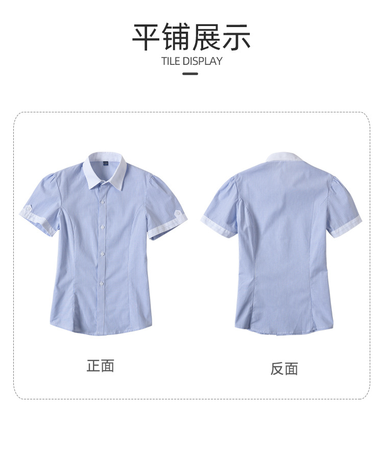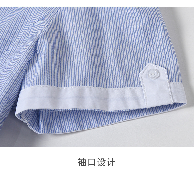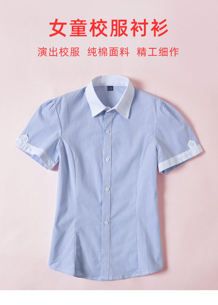 여아 코튼 스트라이프 셔츠 여름 초등학생 테이블 공연 학교 유니폼 어린이 블루 반팔 퍼프 소매 셔츠