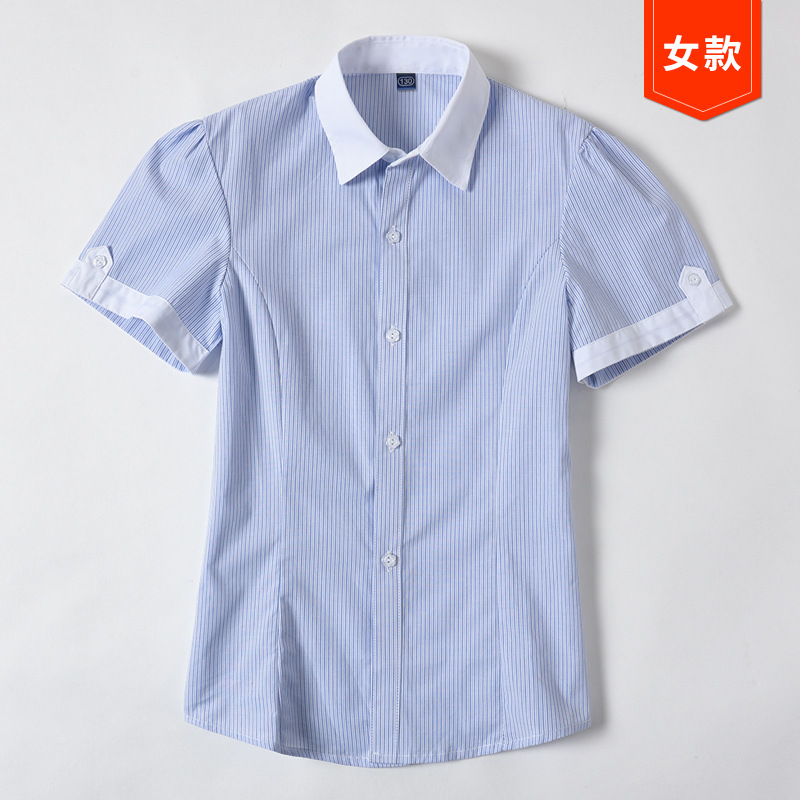 여아 코튼 스트라이프 셔츠 여름 초등학생 테이블 공연 학교 유니폼 어린이 블루 반팔 퍼프 소매 셔츠스토어 가기