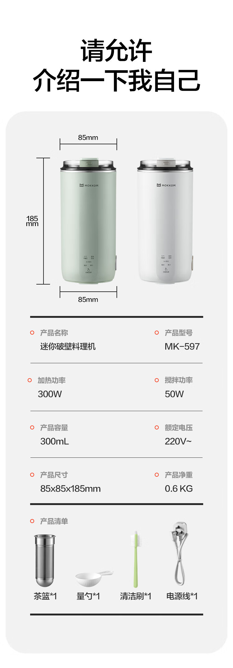 Mokkom 밀 콩 우유 기계 직접 음료 콩 우유 컵 다기능 가정용 휴대용 작은 벽 속보 기계 MK-597WC