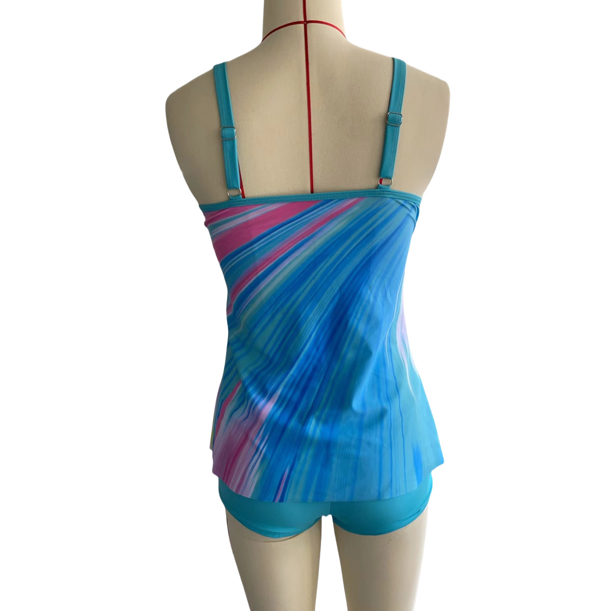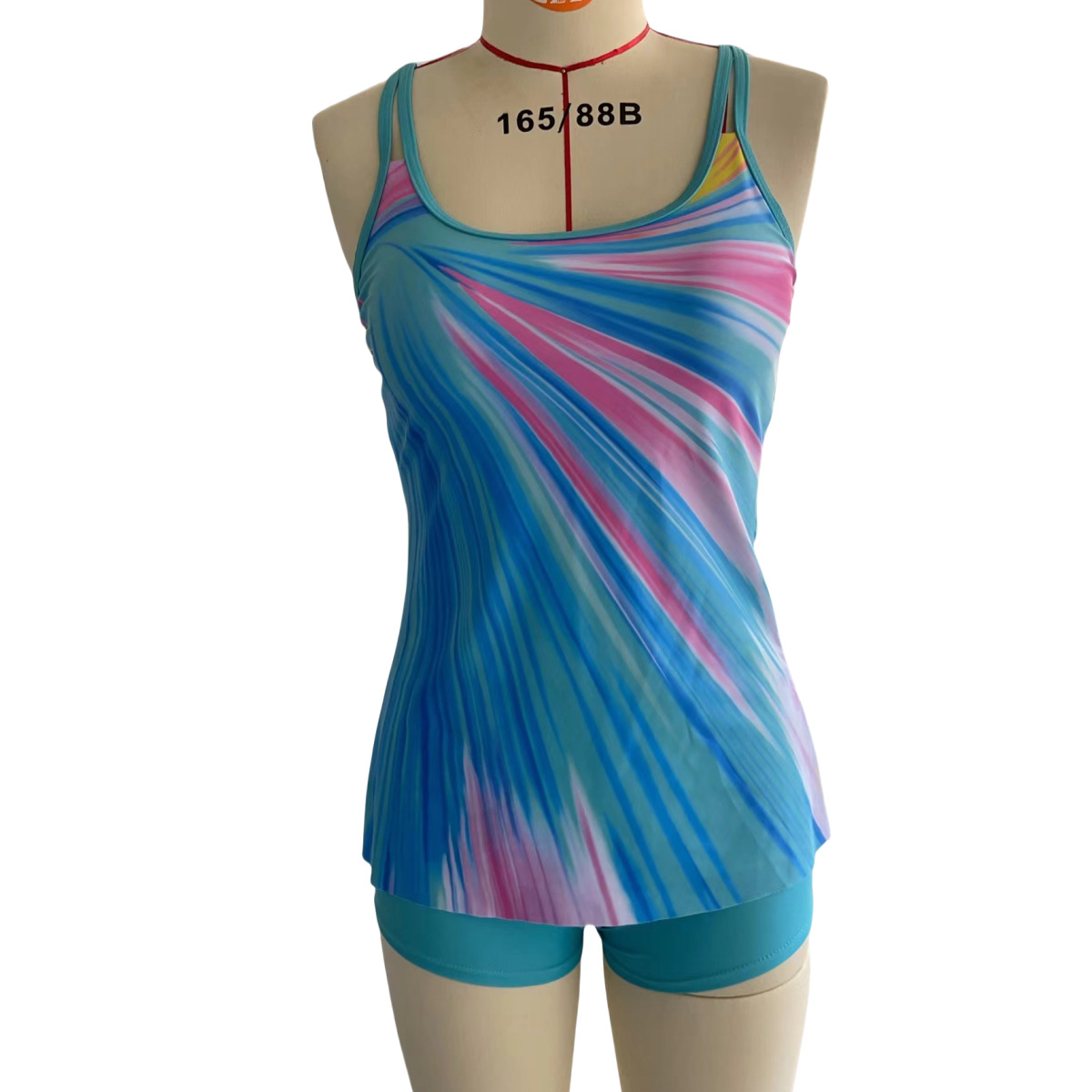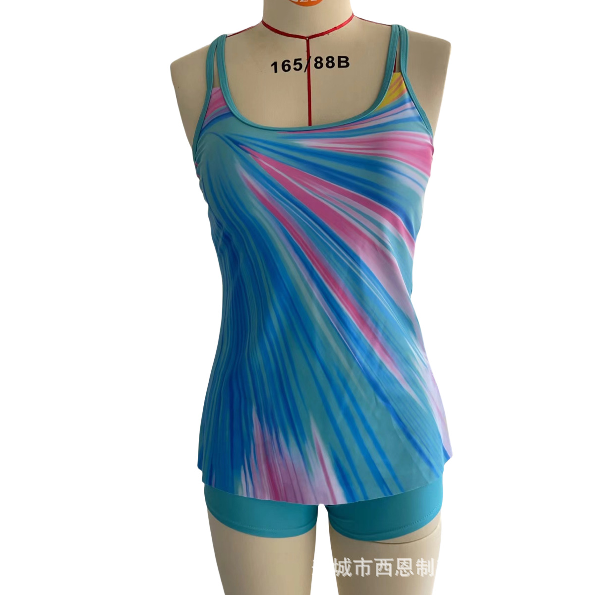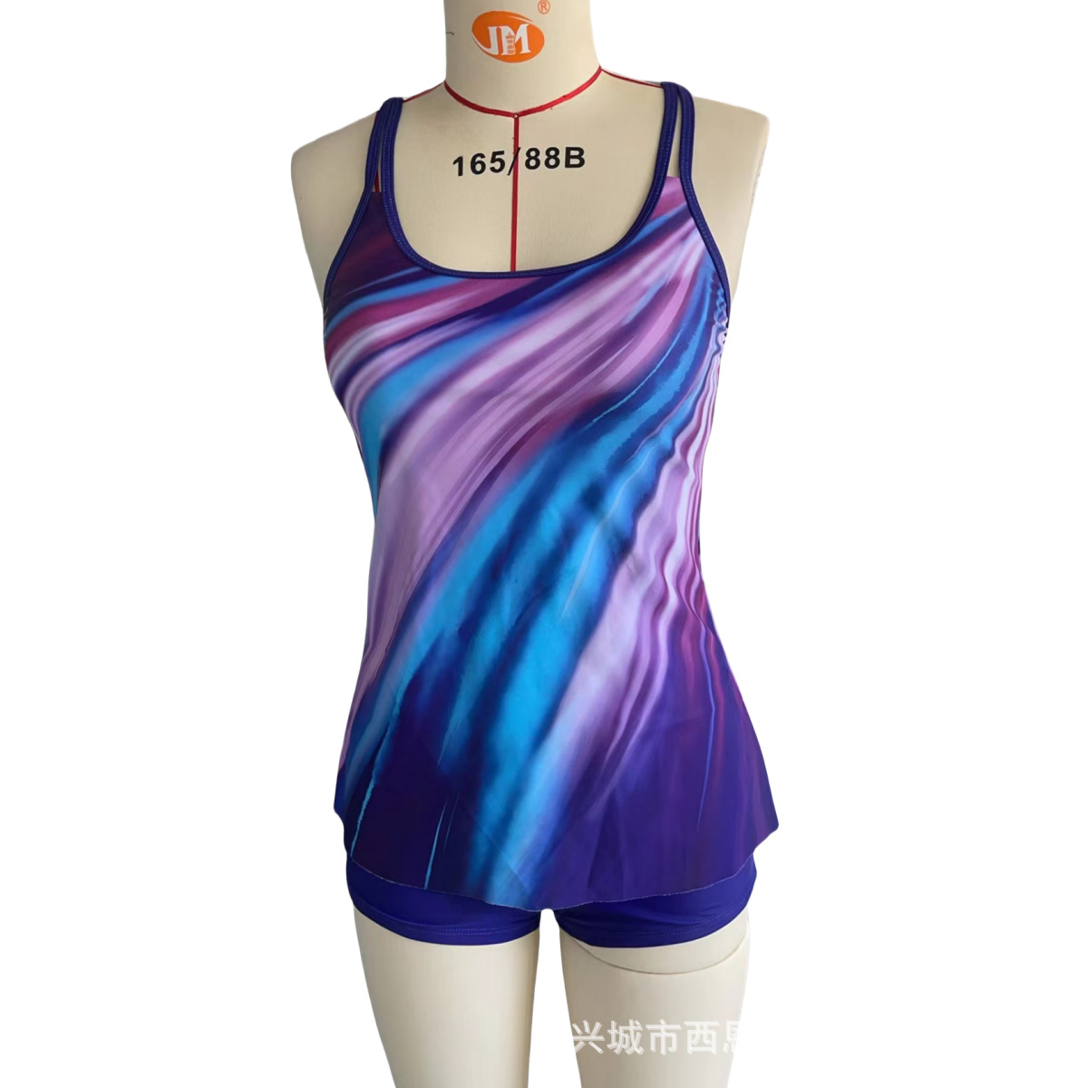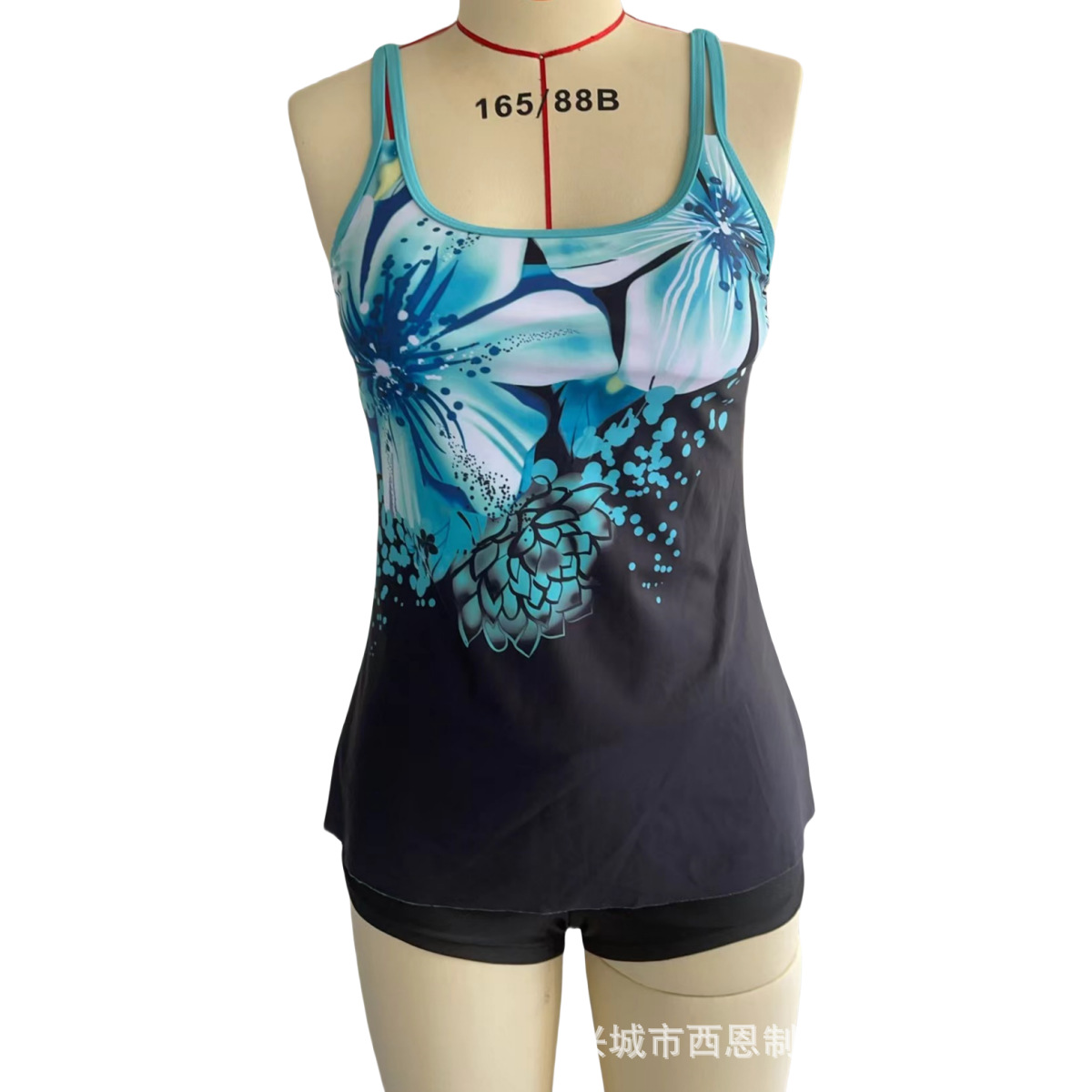 2024 년 여름 새로운 국경 유럽 및 미국 플러스 사이즈 빠른 건조 슬링 탑 플랫 앵글 하단 여성용 스플릿 탄 키니 수영복