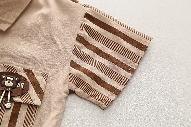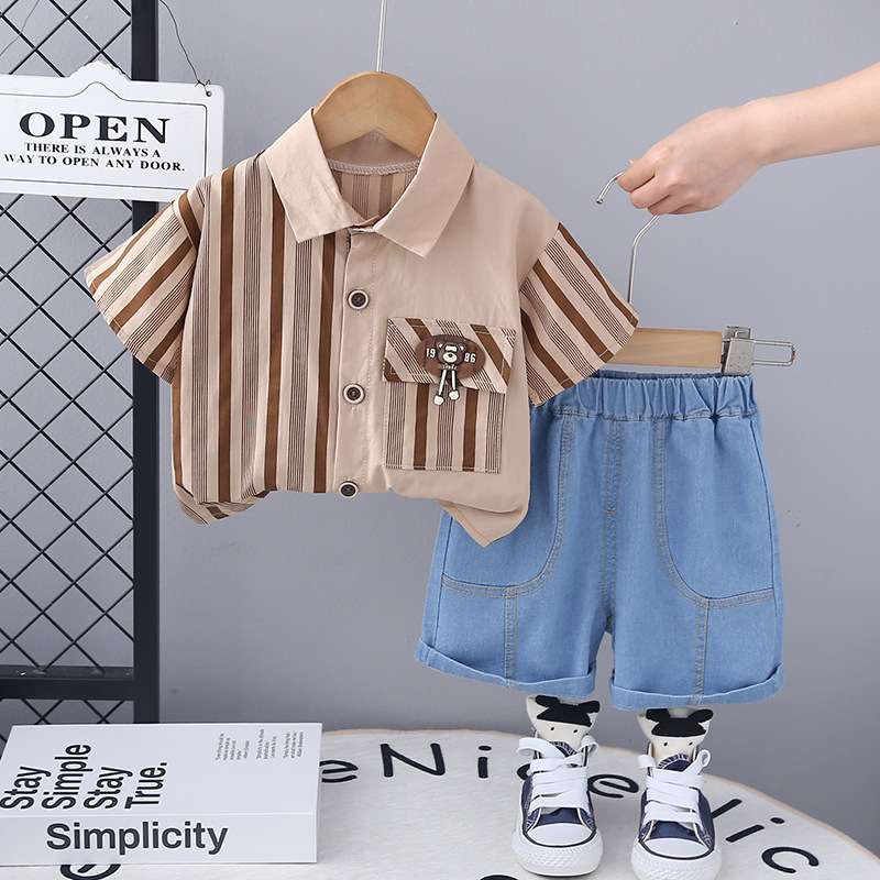 남자들의 여름 반팔 세트 서양식 2024 새로운 어린이 여름 투피스 셔츠 아기의 여름 셔츠 트렌디