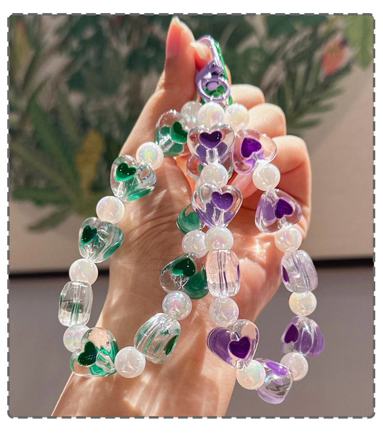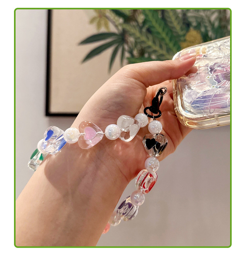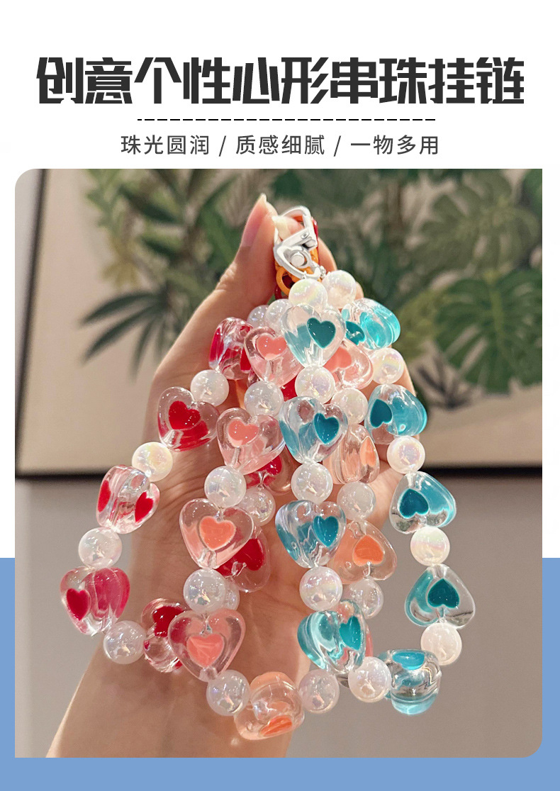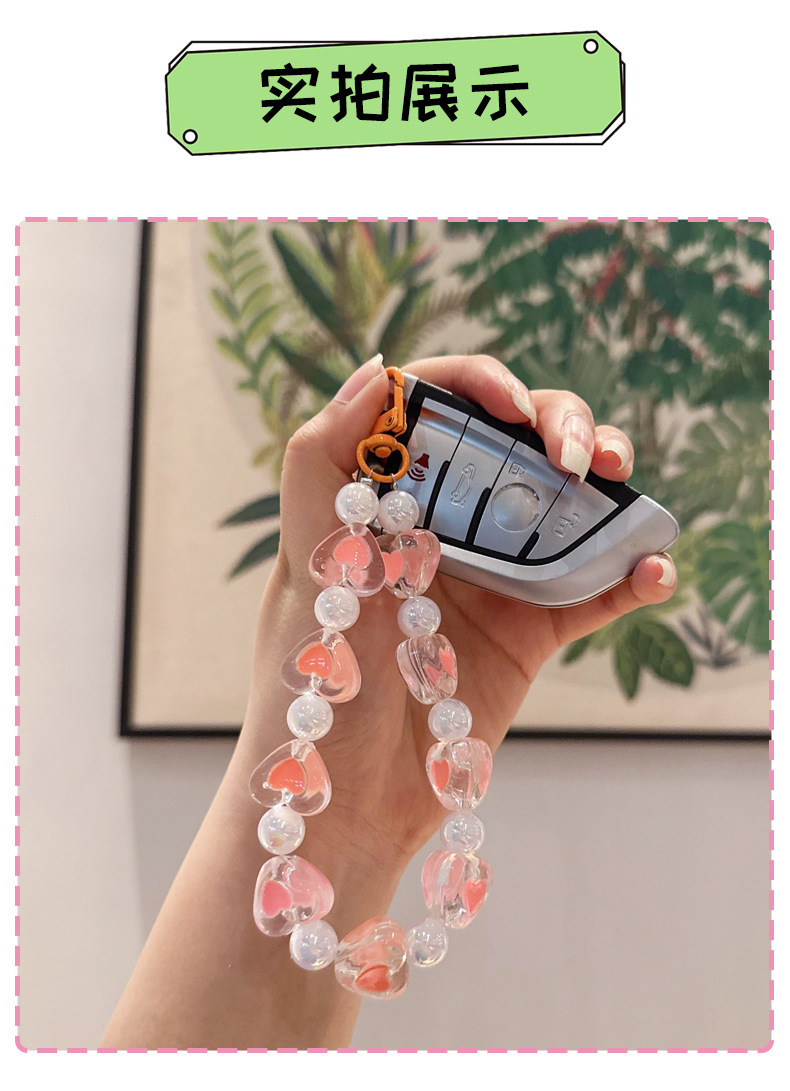 창조적 인 아크릴 구슬 휴대 전화 체인 자동차 키 체인 여성 사랑 자동차 키 체인 복숭아 심장 키 체인 액세서리스토어 가기