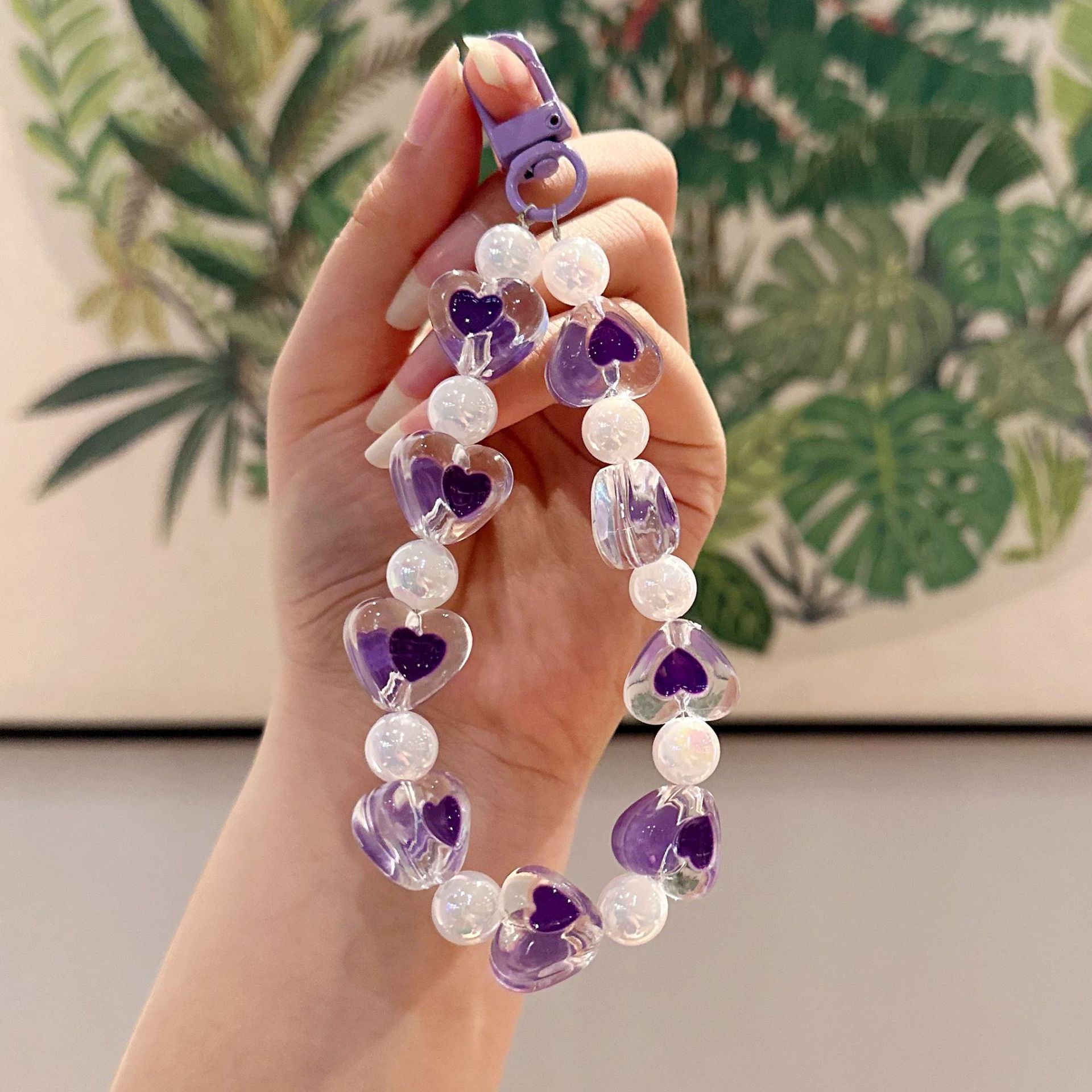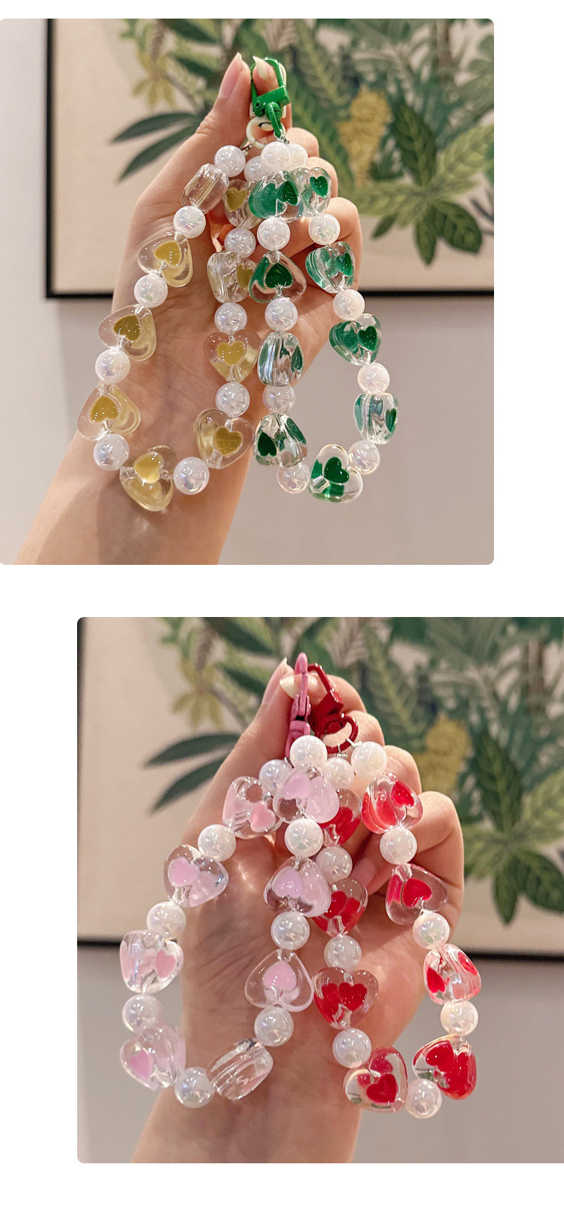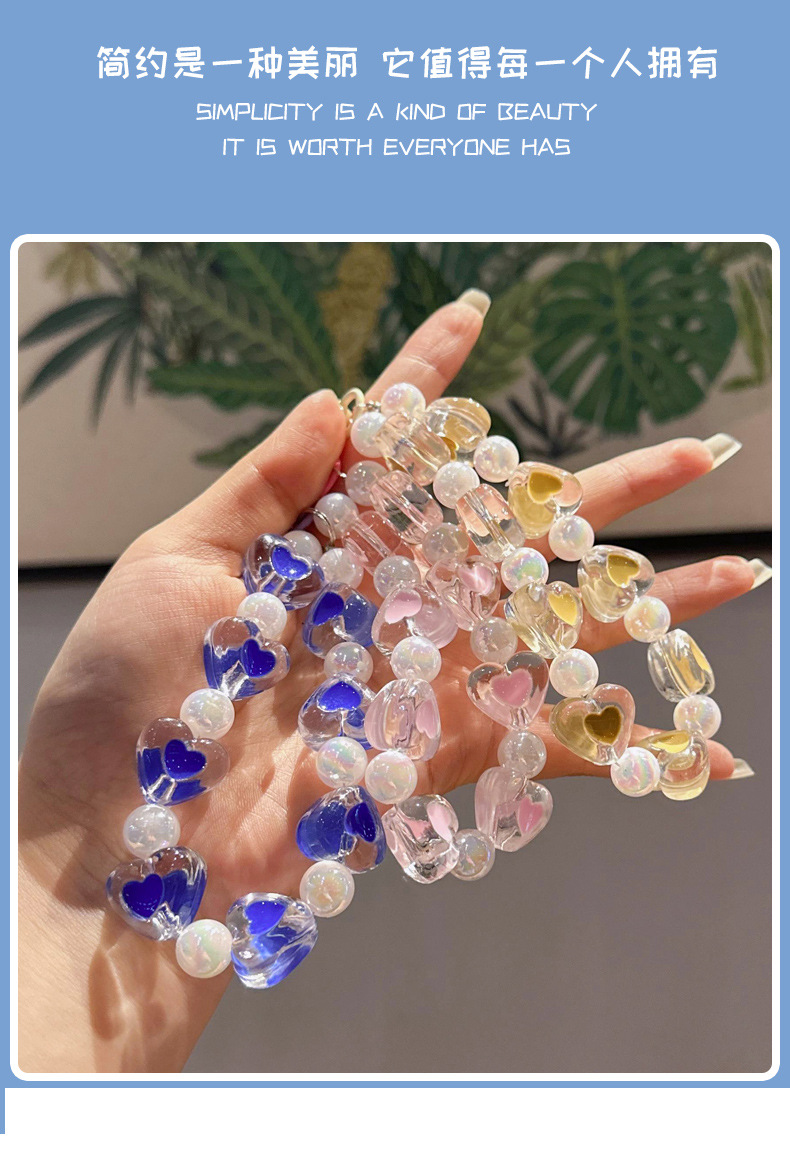 창조적 인 아크릴 구슬 휴대 전화 체인 자동차 키 체인 여성 사랑 자동차 키 체인 복숭아 심장 키 체인 액세서리스토어 가기
