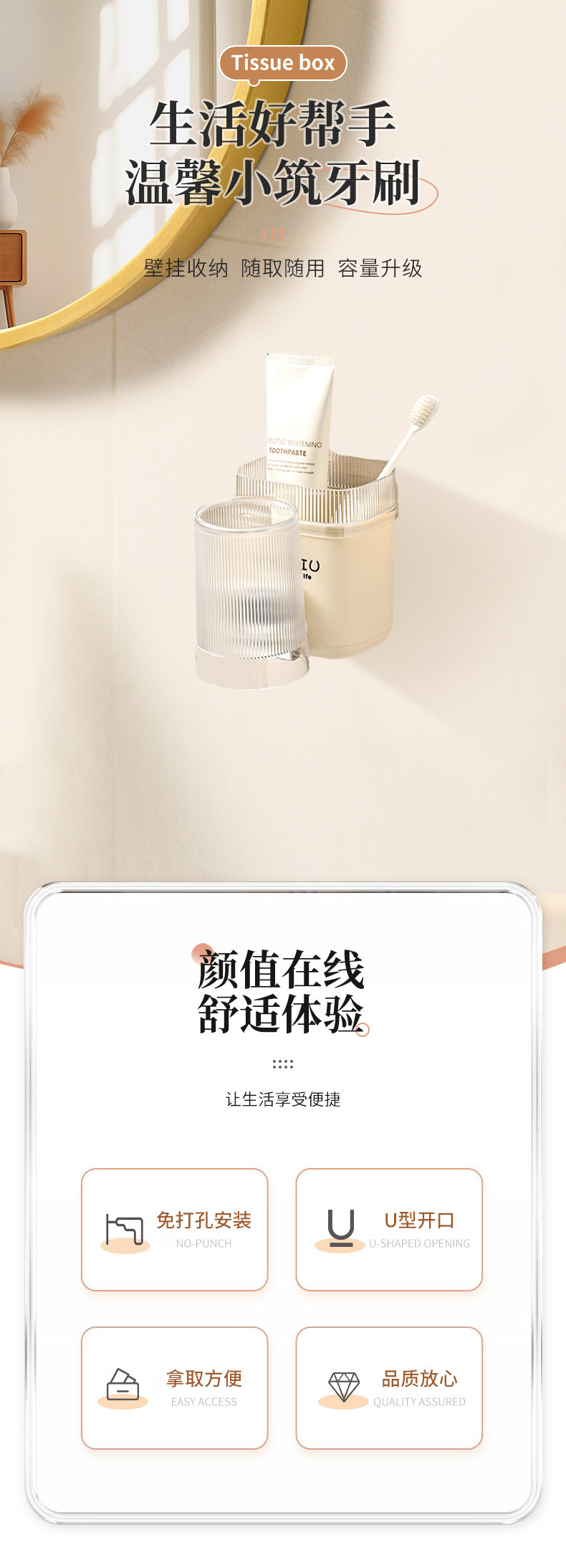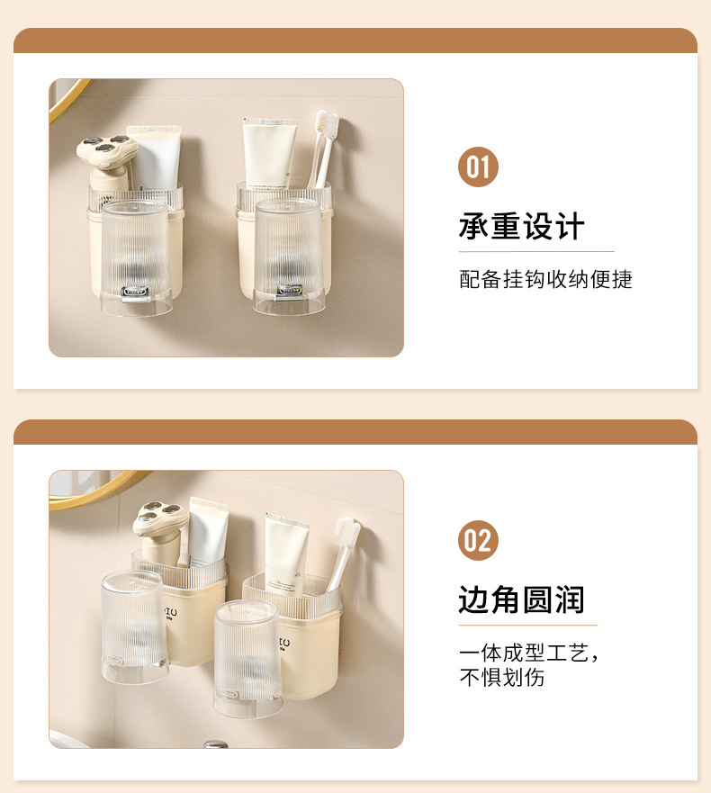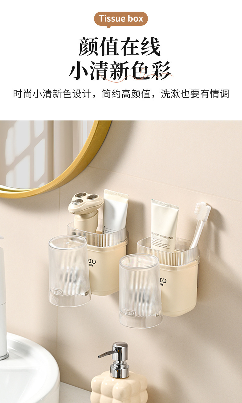 칫솔 보관 랙 크림 바람 펀치없는 벽걸이 가정용 욕실 화장실 싱글 컵 칫솔 홀러 공장 직접 공급스토어 가기