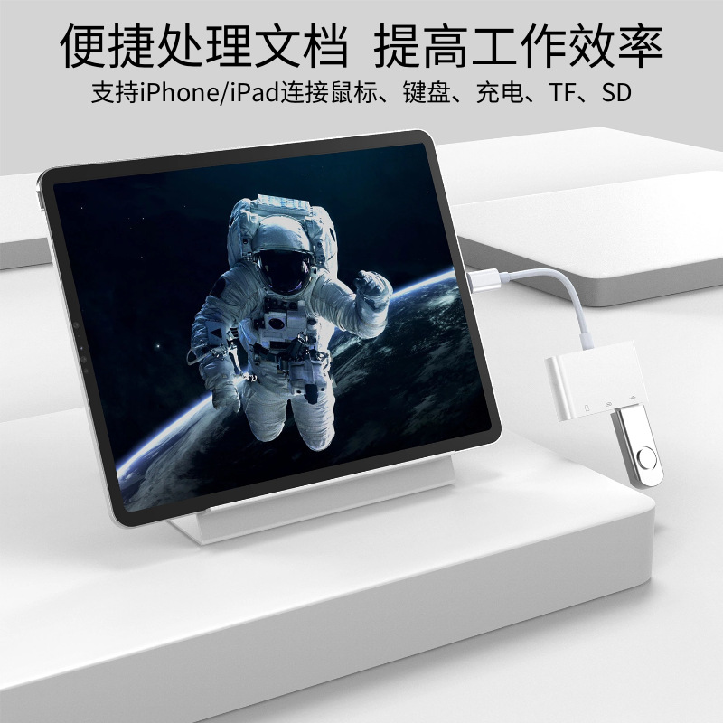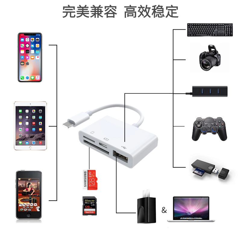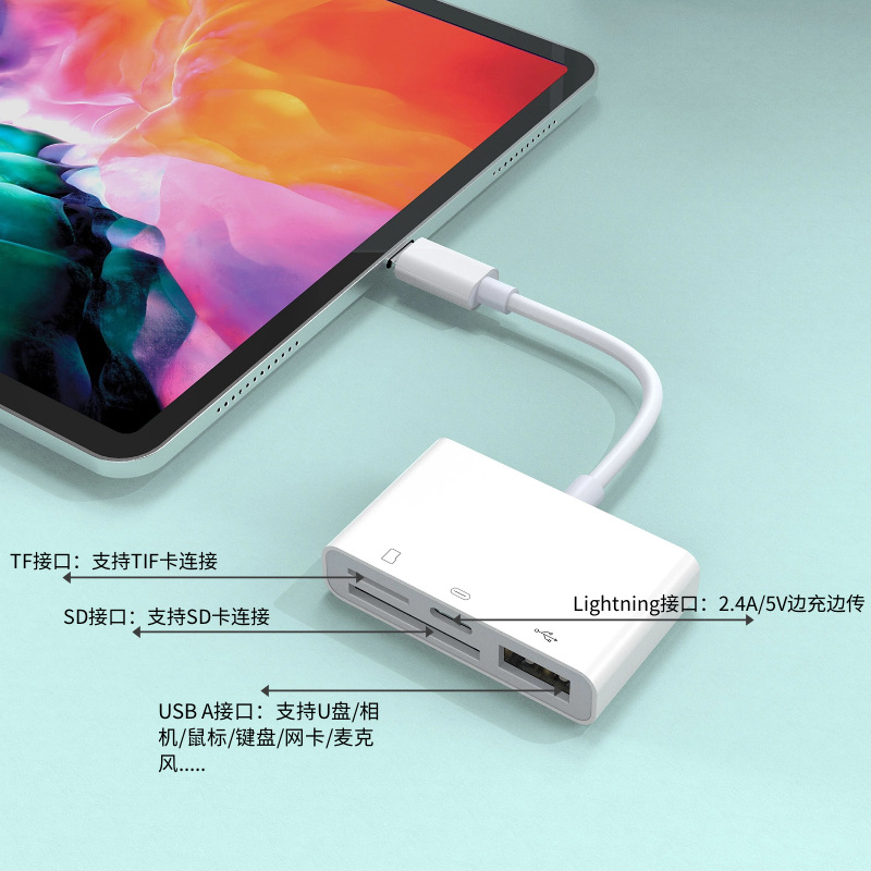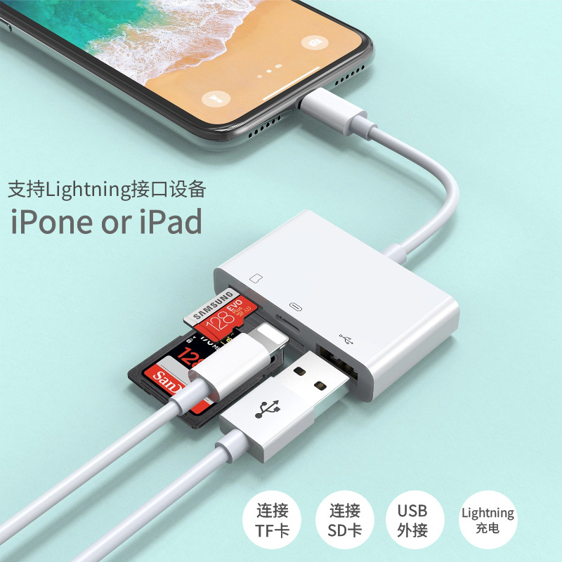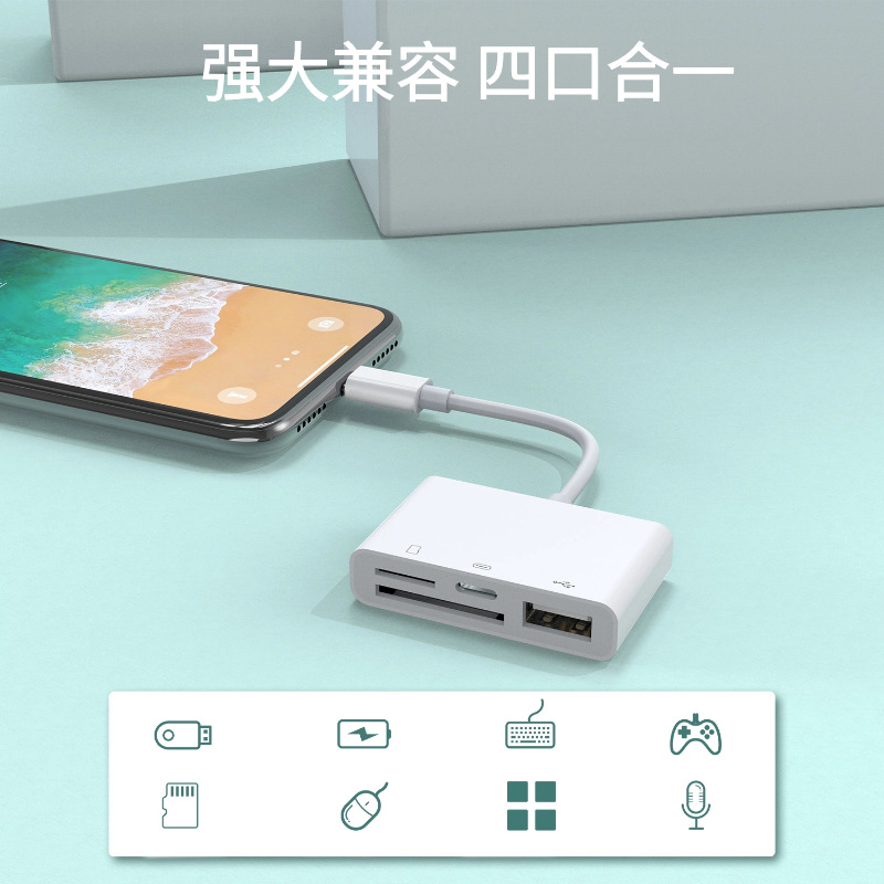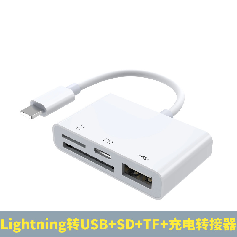 厂家直供适用苹果手机转TF卡相机sd卡充电多功能四合一OTG读卡器