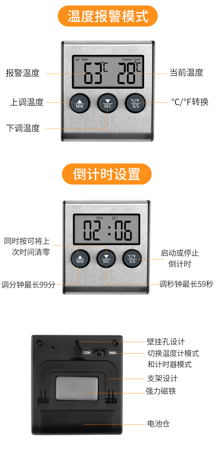 GHY-305材质ABS 主机+ 18CM 304食品级不锈钢探针电源1XAAA 干电池(不含)