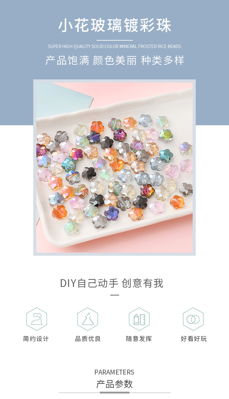 10 5 개의 꽃잎 꽃 유리 컬러 도금 구슬 느슨한 구슬 diy 수제 귀걸이 헤어 액세서리 팔찌 장식품스토어 가기