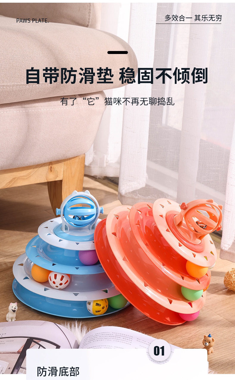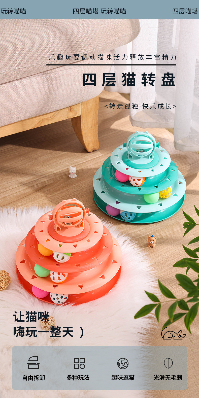 새로운 고양이 장난감 4 층 고양이 턴테이블 재미있는 고양이 스틱 자기 안녕 재미있는 고양이 구호 유물 애완 동물 용품 재고 도매