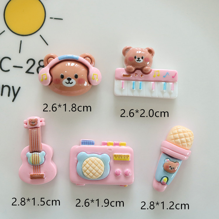 밝은 수지 액세서리 도매 곰 악기 피아노 마이크 기타 DIY 수제 반제품