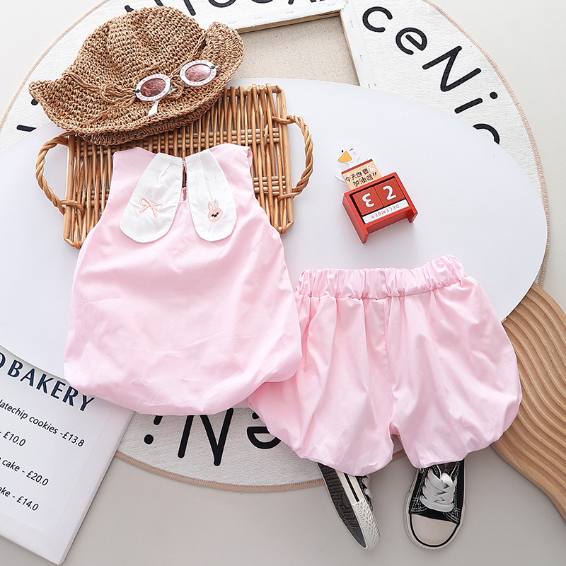 여자 여름 세트 여름 새로운 귀여운 프라이드 스트리트 5 3 차원 토끼 머리 조끼 세트 트렌디